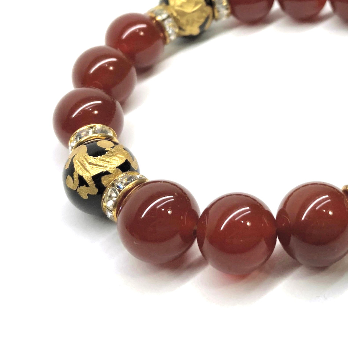 四神獣金彫オニキス×赤瑪瑙 12mm パワーストーン ブレスレット天然石 青龍 白虎 玄武 朱雀 運気上昇 開運 金運 お守り 四神獸 四神相応 G