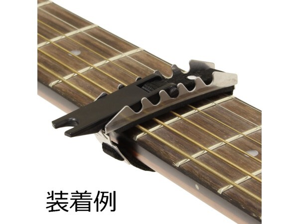 アコースティックギター用カポタストです。一般的な指板Rのアコースティックギターに装着できます。