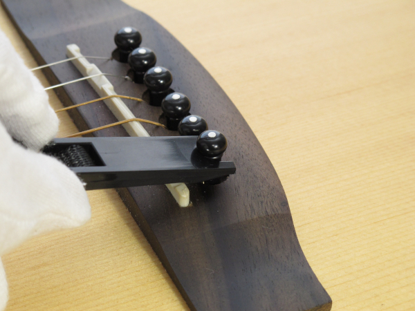 ※平面な指板のクラシックギターやウクレレには使用できません。またテレキャスターモデルなど指板Rの小さいエレキギターには使用できません。※検品において実際のギターに装着しますため、ラバー部分に押弦の跡が残ります。