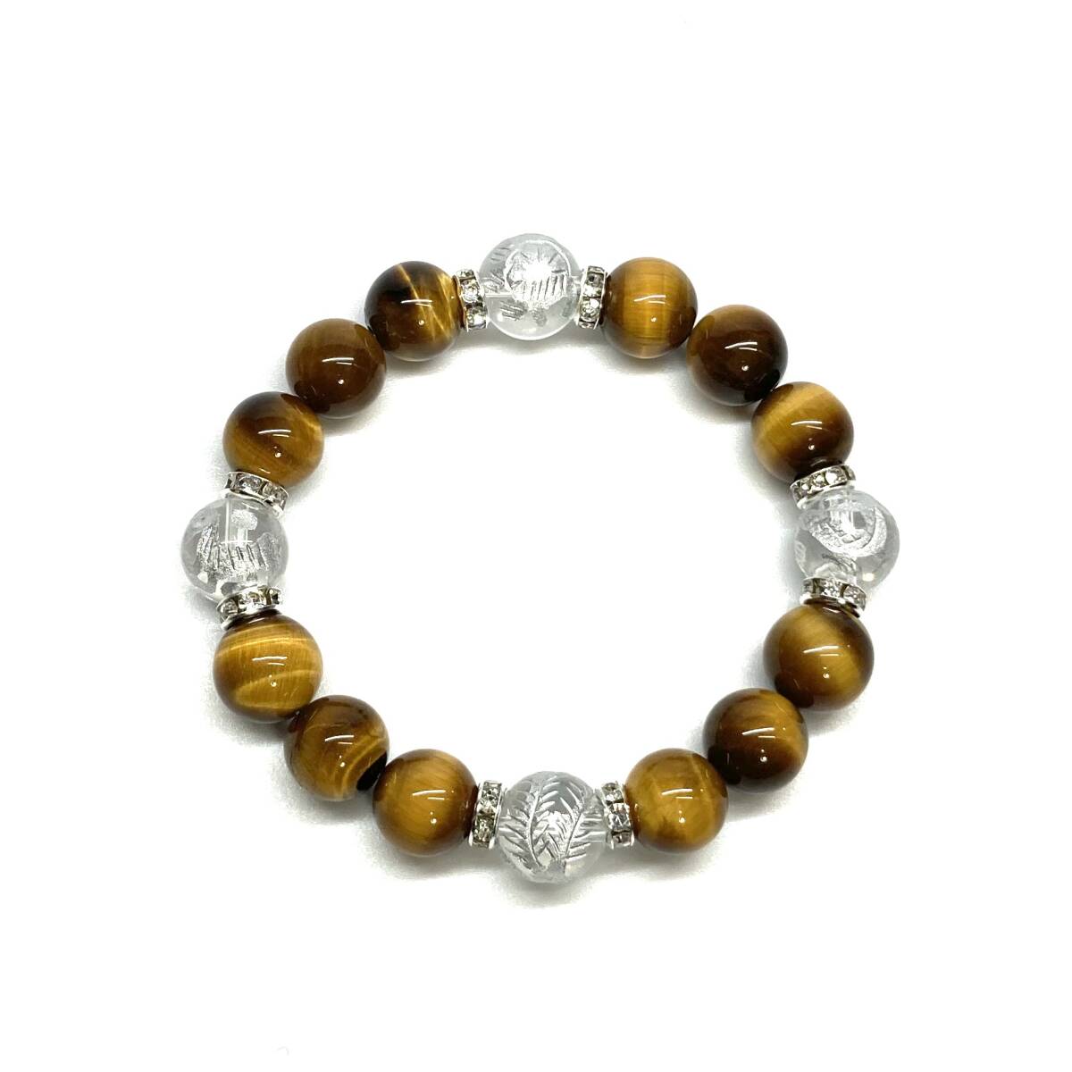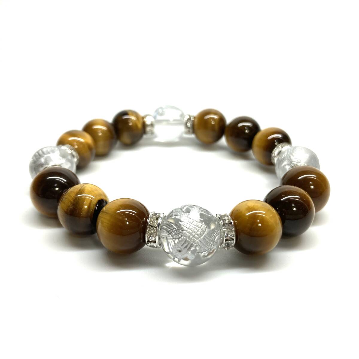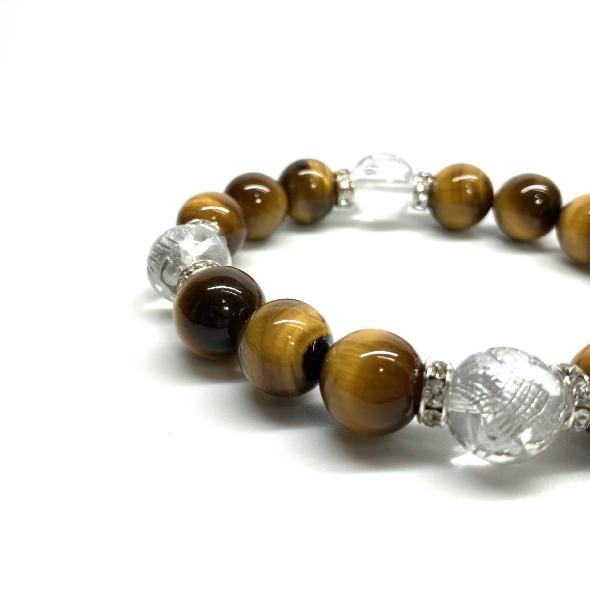 四神獣銀彫水晶×タイガーアイ 12mm パワーストーン ブレスレット天然石 青龍 白虎 玄武 朱雀 運気上昇 お守り 金運 四神獸 四神相応 S