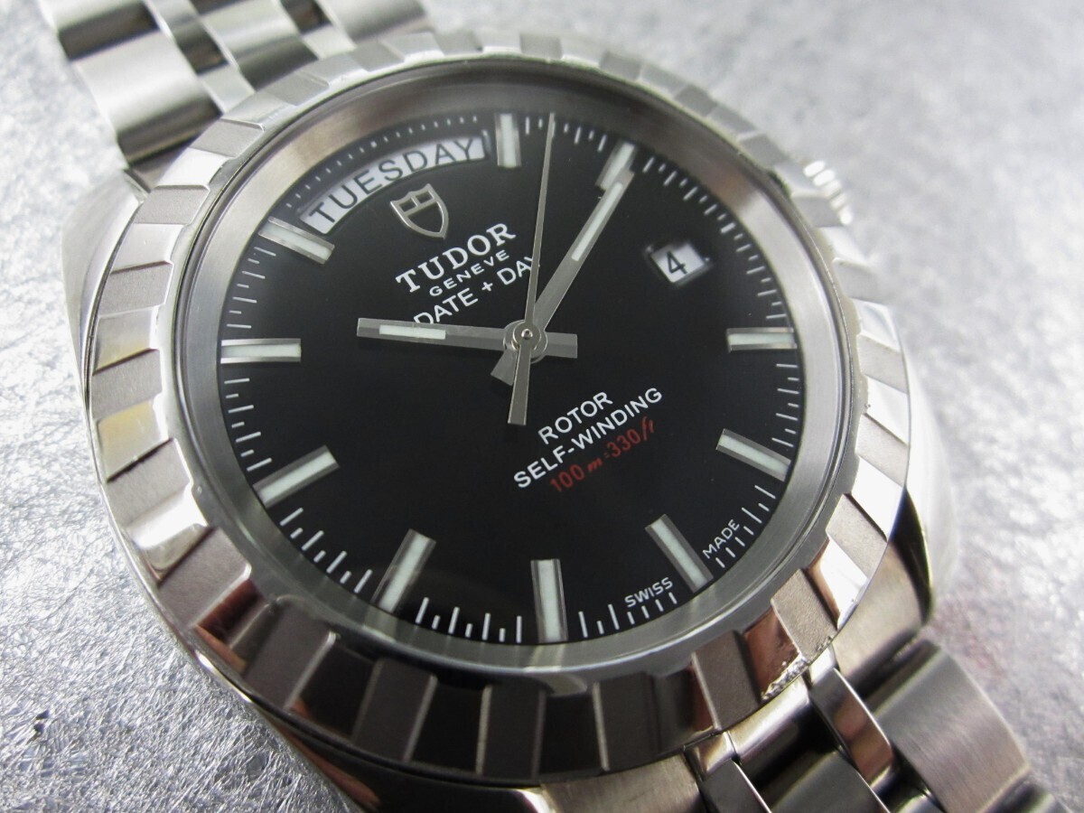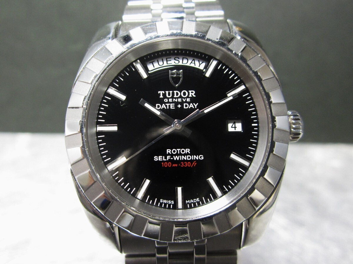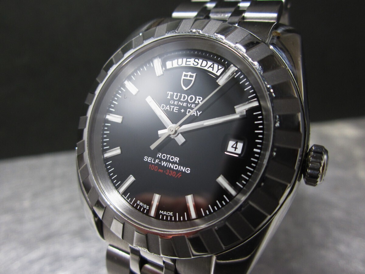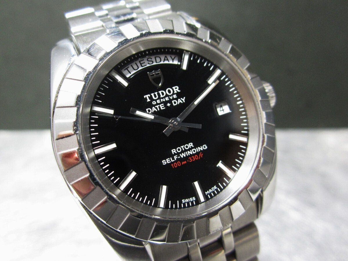 オーバーホール済み 極美品 ガラス無傷 保護シール 余りコマ 冊子付き チュードル ブラック文字盤 自動巻 腕時計 メンズ