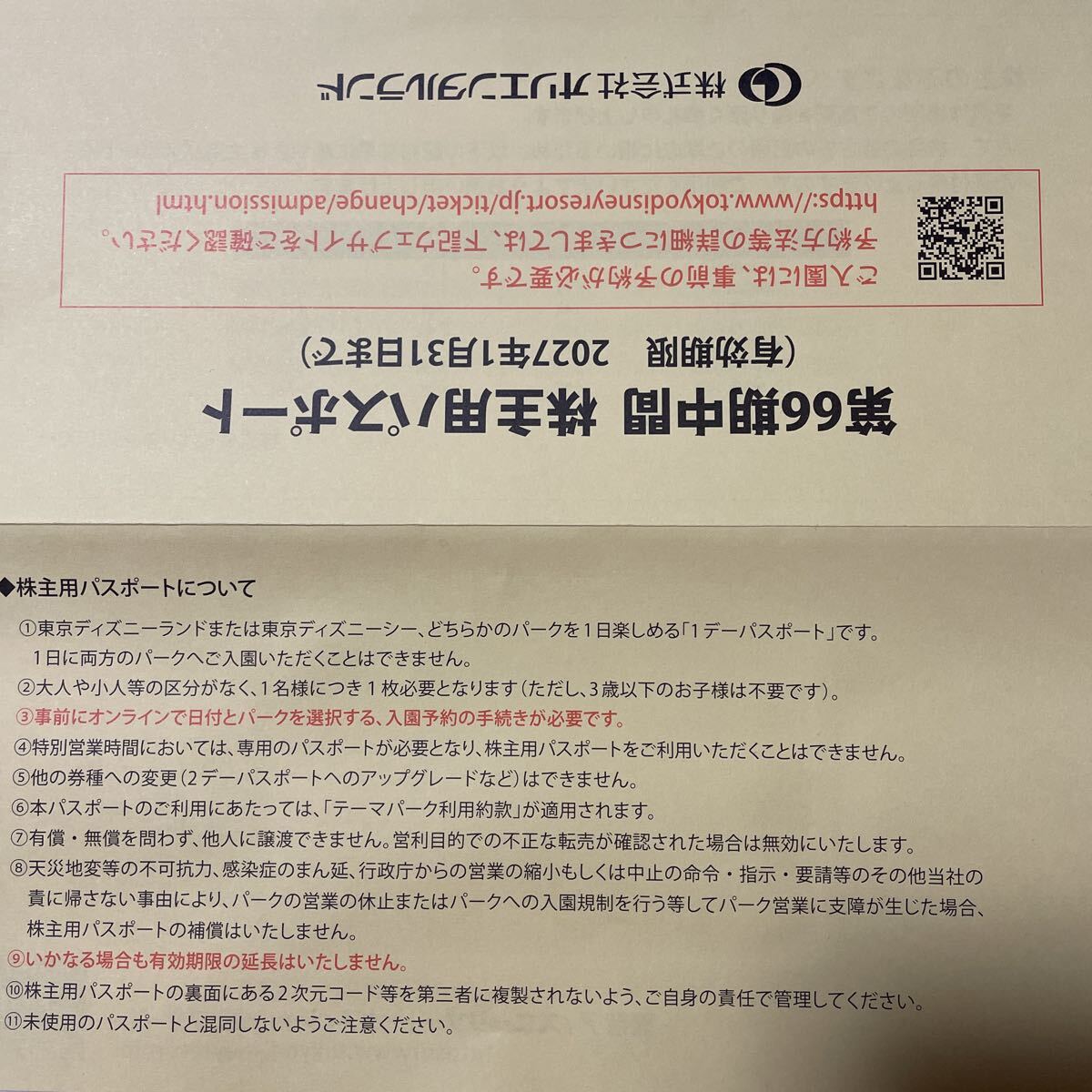 商品名 : オリエンタルランド 株主用パスポート
