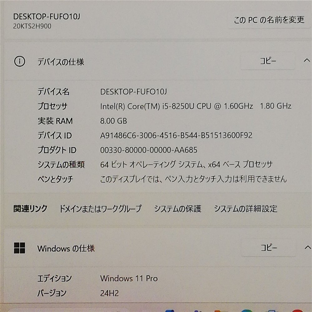 ★ CPU  ・・・ 第8世代 Intel Core i5-8250U 1.60GHz