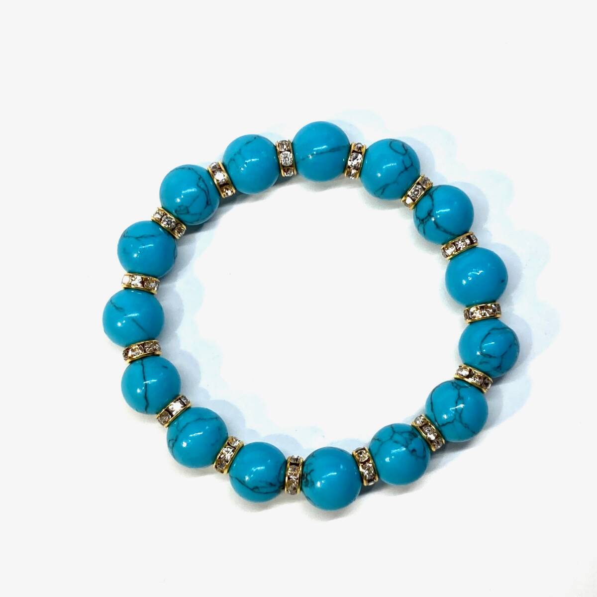 こちらは、12mm玉のターコイズを使用したブレスレットです。石との間にはロンデルを挟み高級感を演出しています。シンプルなデザインですのでどんなコーディネートとも合わせ易いブレスレットです。石大きさは12mm玉です。内径約18cmです。(サイズ変更の場合は取引ナビにてご連絡をお願いします。) 数に限りがございますので気になる方はお早めにどうぞ。