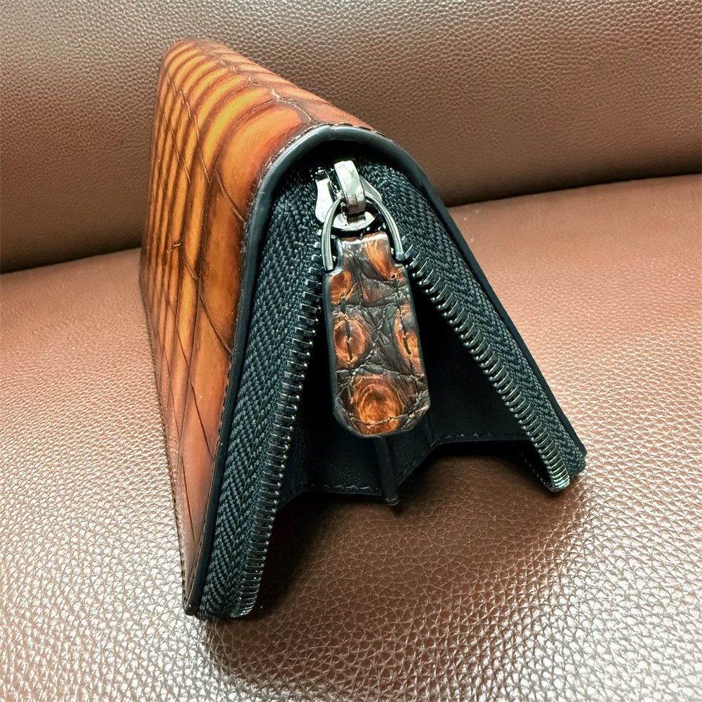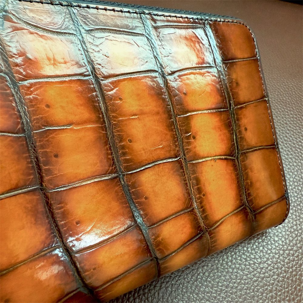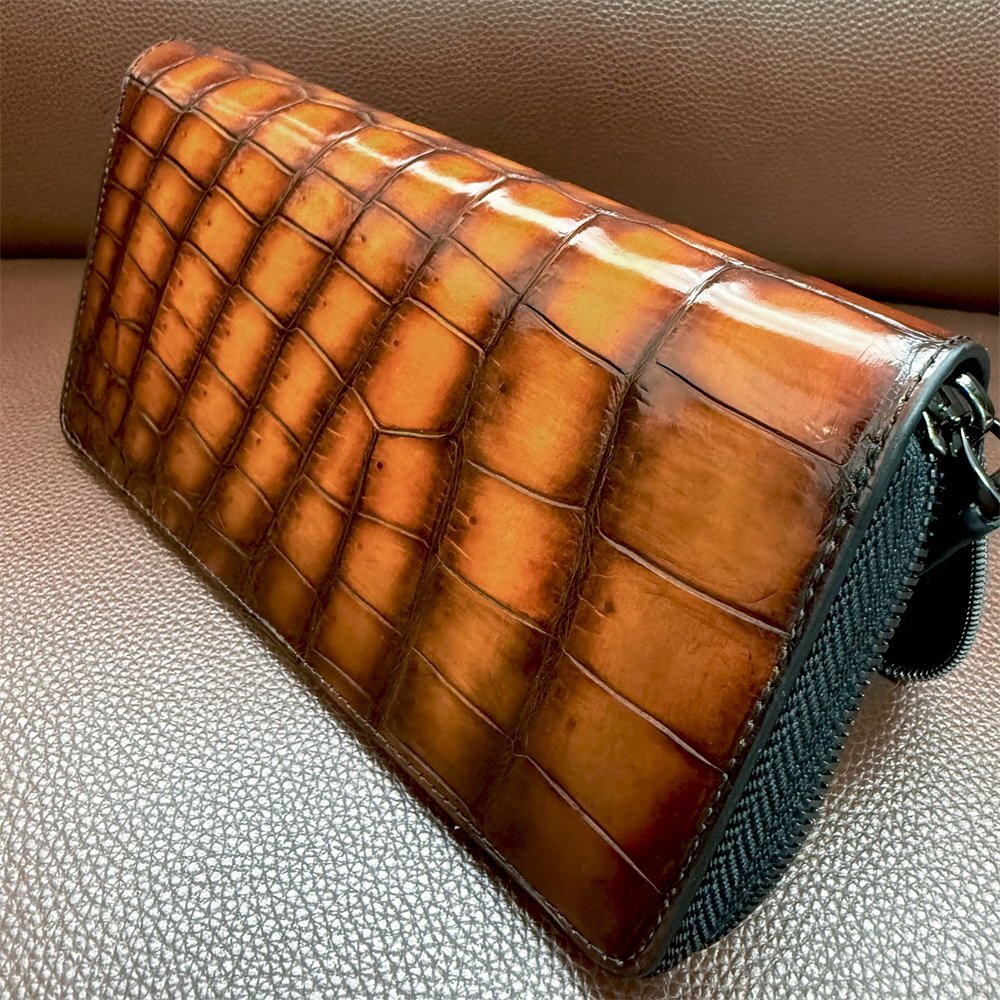 極上の素材感を誇る最高級アメリカアリゲーターを独創的な手染めパティーヌで仕上げられたブランドならではの逸品。