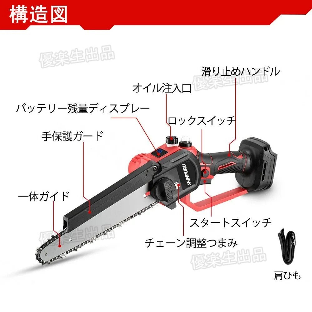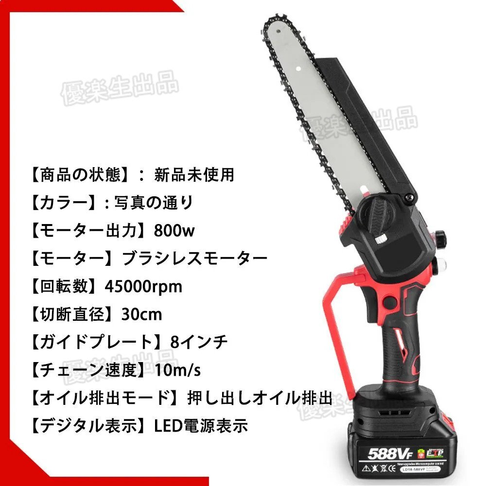 新品未使用 ェーンソー 充電式チェーンソー 7インチ 有効切断長300mmマキタ 18V バッテリー 互換対応 竹切り 枝木を切るに適用 yhw028