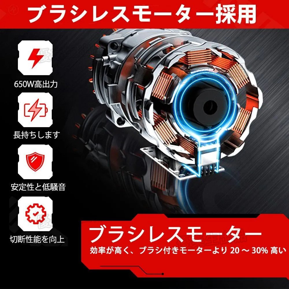 チェーンソー 充電式は強力なブラシレスモータを採用し、強力で効率的な切断を実現する。ブラシレスモータは純銅モータに比べて寿命320%、出力電力が80%増加し、エネルギー消費量が60%削減されます。8インチ充電式チェーンソーは30cmナイフの長さで、チェンソーの速度は10m/sに達し、直径25cmまでの木を8秒以内に切断することができます。純銅モータター より速く、より安定して動作しますが、摩耗が少なく、エネルギー消費が低くなります、スムーズで低騒音、効率的な切断。