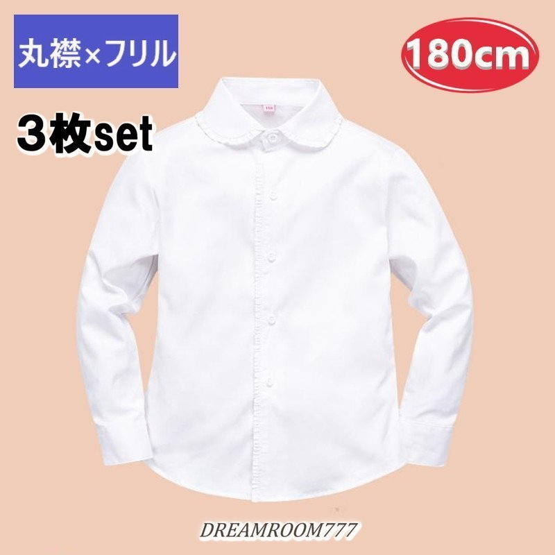 お得な3枚set★綿100% 丸襟×フリル ブラウス【180cm】ワイシャツ 白シャツ 学生服 フォーマル 冠婚葬祭 制服