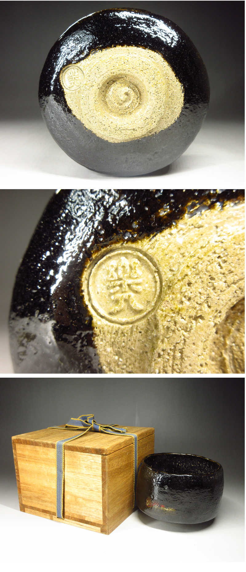 『吉村楽入』造 黒茶碗 黒楽茶碗 合箱 楽焼 京焼 茶道具 本物保証