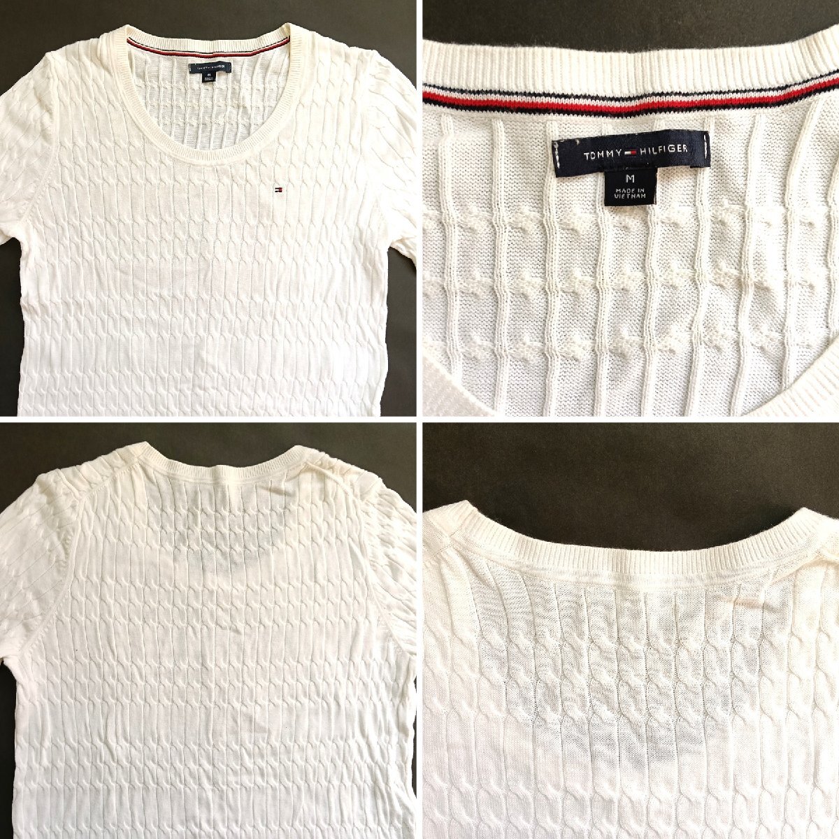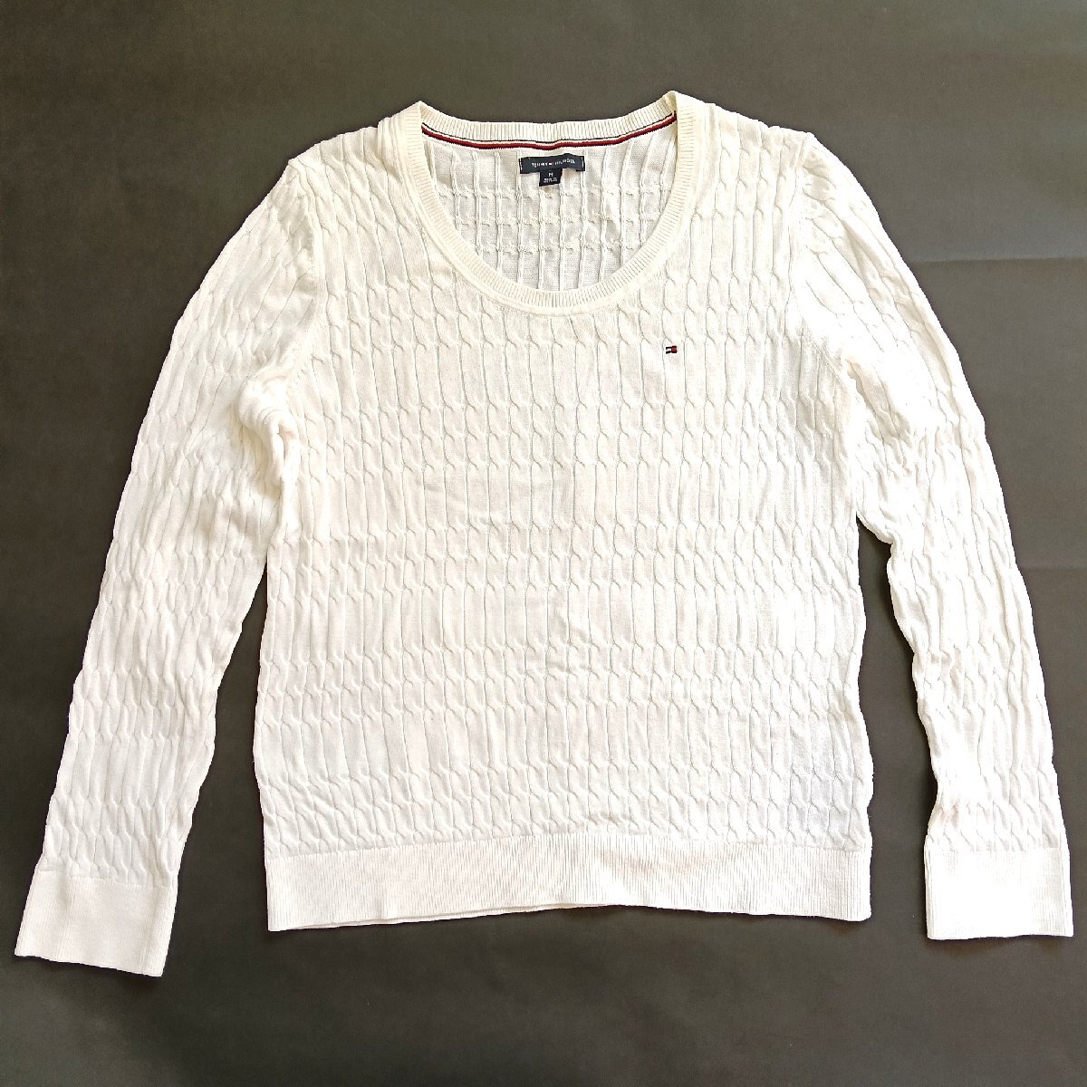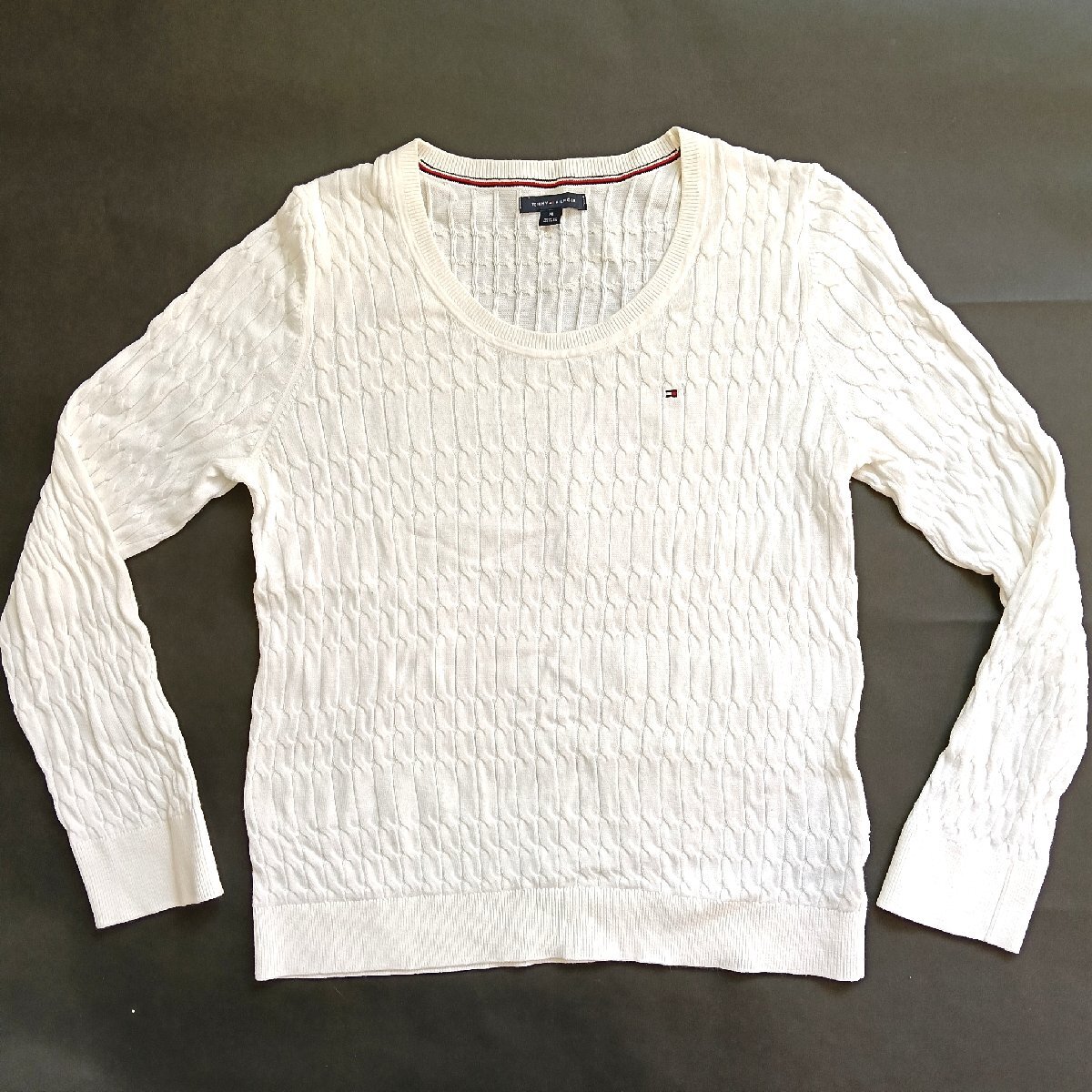 | Tommy Hilfiger トミーヒルフィガー ケーブルニットセーター Мサイズ ホワイト 長袖 トップス ニット ブランドロゴ アパレル HMY |