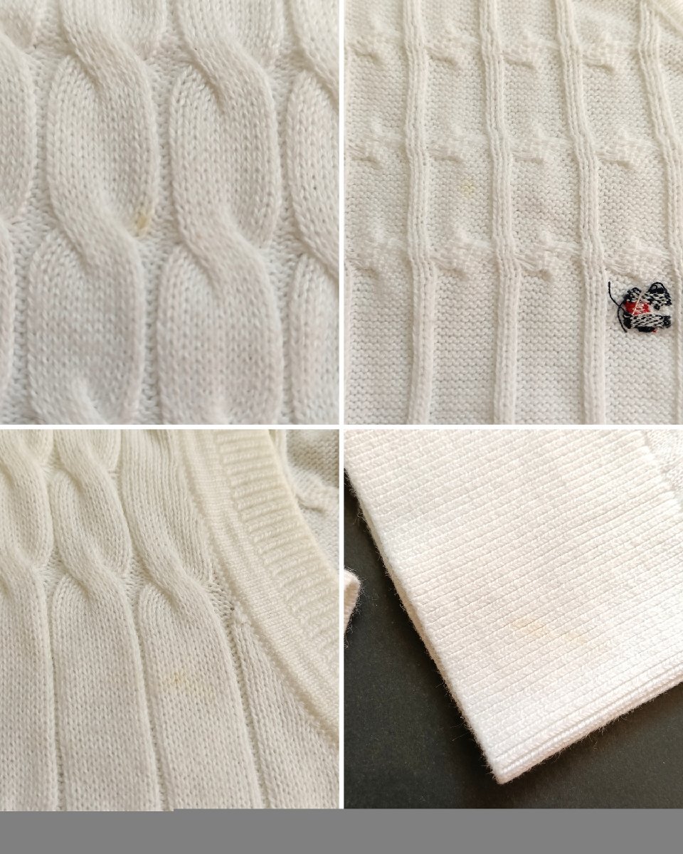 商品説明 Tommy Hilfiger(トミーヒルフィガー)のケーブルニットセーターです。 クラシックなケーブル編みが特徴で、上品なホワイトカラーはどんなスタイルにも合わせやすく、季節感たっぷりのアイテムです。 柔らかく暖かいニット素材で、肌触りも良く着心地抜群。 一枚でのコーディネートはもちろん、シャツやカットソーとの重ね着も楽しめます。 詳細 ●サイズ:【Mサイズ】 袖丈58cm、身幅44cm、肩幅37cm、着丈58cm(平置き採寸) ●素 材:綿99%、ナイロン1% ●カラー:ホワイト ●ランク:Cランク ●コンディション:左手袖口、左首元、内側のロゴ近くや表側の中央にシミがあります。 全体に畳み皺があります。 |