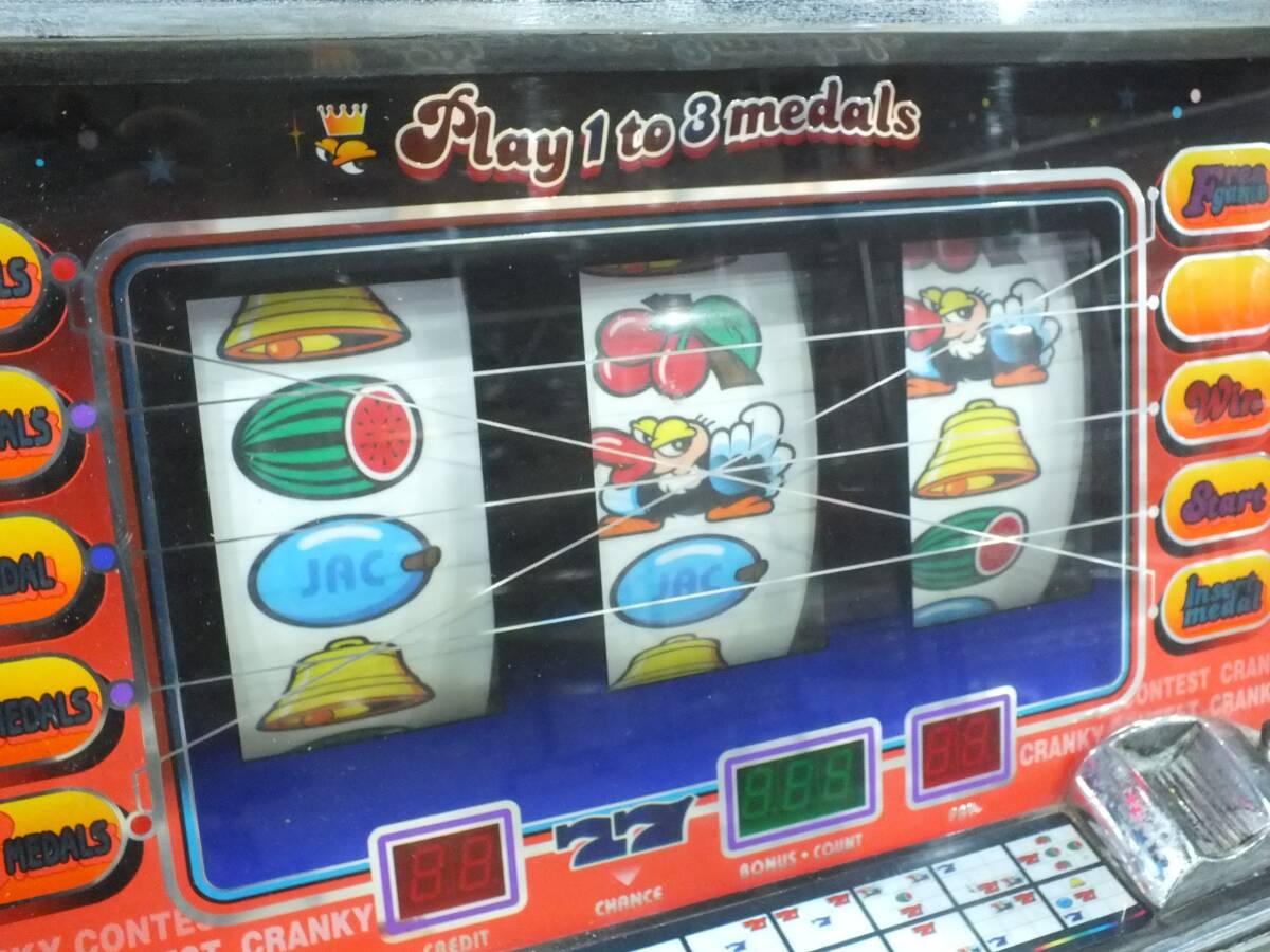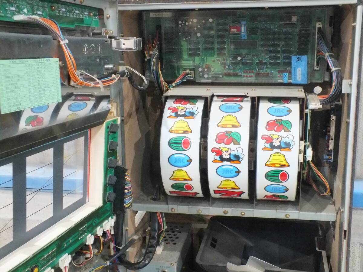 | 中古品 スロット機本体のみ 詳細・動作未確認の現状渡し 使用 保管 経年による劣化・痛み・傷・破損・汚れ・変色等はご容赦ください。 詳細未確認の為ジャンク品扱いとさせていただきます。 全てに対しての保証はありませんので修理や部品交換・部品取り等を前提としてご検討ください。 同梱不可。 エアーキャップ(プチプチ)で巻くだけの簡易梱包となりますのでご了承ください。 商品説明に記載のある物や画像に写っている物(撮影機材等は除く)以外は基本的に付属しておりません。 撮影や表示の状況で画像と実際の商品の色合い等が異なって見える場合があります。 掲載には慎重を期しておりますが画像や商品説明に提示漏れが起こる場合があります。 また、画像では確認できない程度の傷等がついている場合があります。 商品状態等の記載事項は当方判断ですので あくまでもご参考としていただき、最終的にはお客様のご判断にてのご入札をお願いします。 落札後のトラブルを避ける為にも、説明・画像をよくご覧になってから、ご入札のほどよろしくお願い致します。 ご入札いただいた時点で商品状態等に対して了承したものとみなします。 オークション対応や商品に関する事に関しまして気になる点がありましたら、質問にてあらかじめお問い合わせいただきますようお願いたします。 | |||