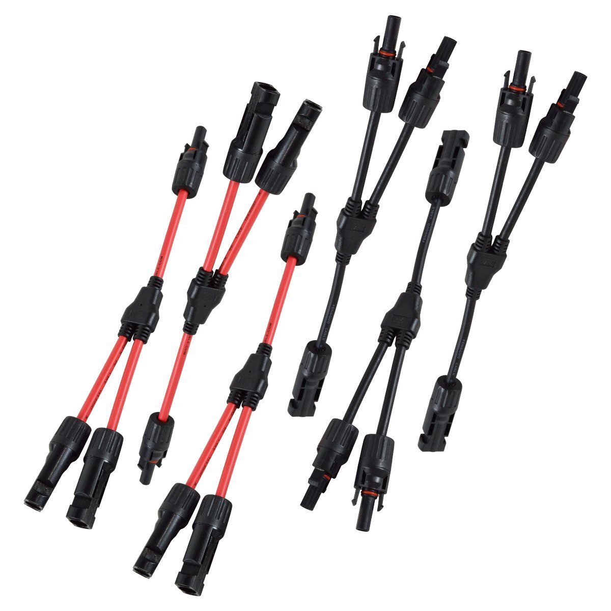 『3セット 6本』Y型 並列用 2分配 並列 分岐 MC4 接続 ケーブル コネクター ソーラーパネル用 オス/メス プラス/マイナス 6個