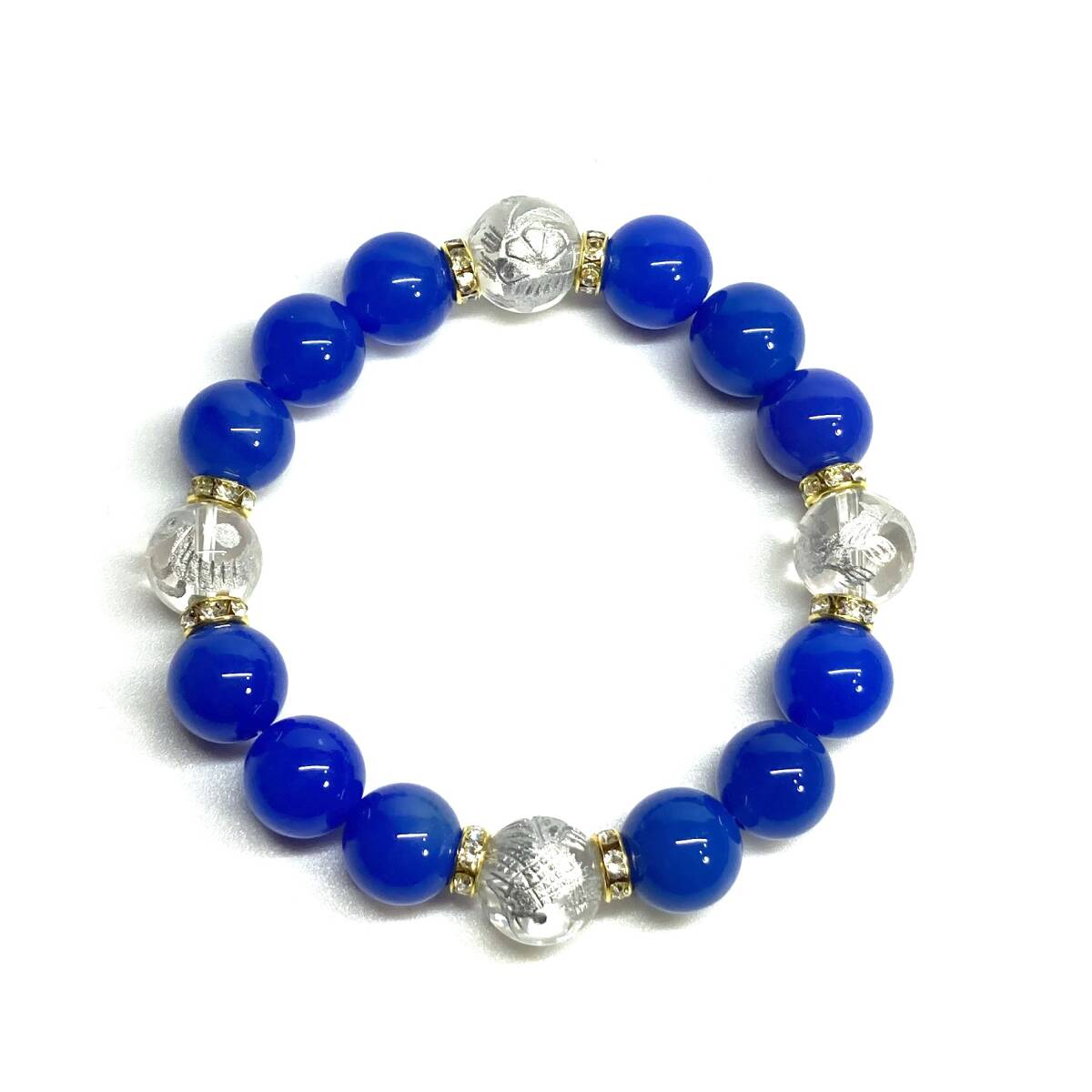 こちらは、四神獣銀彫水晶と青瑪瑙を組み合わせたパワーストーンブレスレットです。四神獣は、中国の伝説で4つの方向(東西南北)を守護する神聖な神。四神獣、厄災から身を守り、多くの運気を呼び込むと言われております。石大きさは程よくインパクトのある12mm玉で内周 約17cmです。 数に限りがございますので気になる方はお早めにどうぞ。