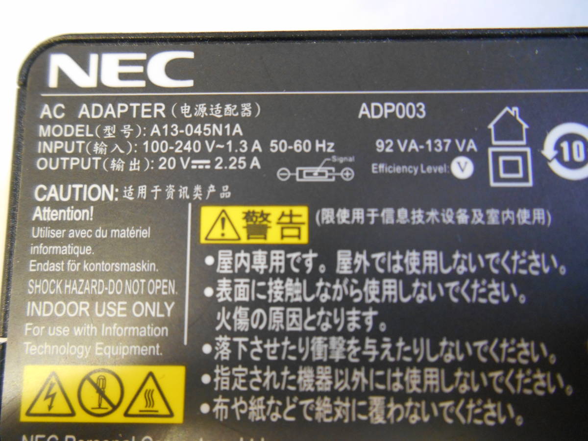 NEC 純正 ACアダプタ ADP003(A13-045N1A) PC-VP-BP98 20V 2.25A 角型 (473