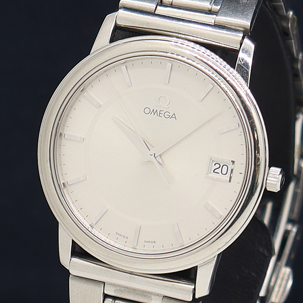 1円 稼働 良品 オメガ プレステージ シルバー文字盤 デイト メンズ腕時計 0993300 12TLT IKE