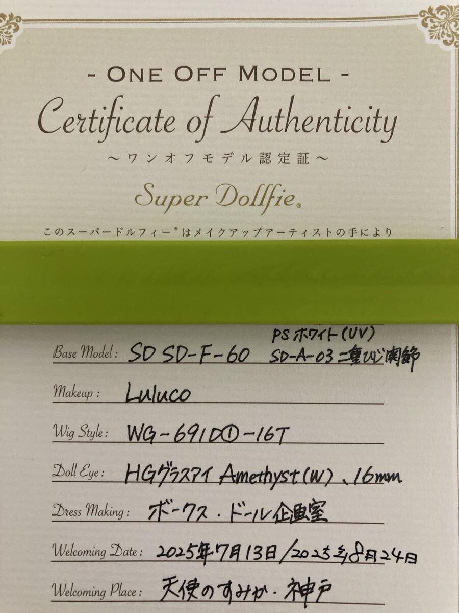 ワンオフ証明書は、名前の部分を切り取りお付けします。お迎え読本もあり。