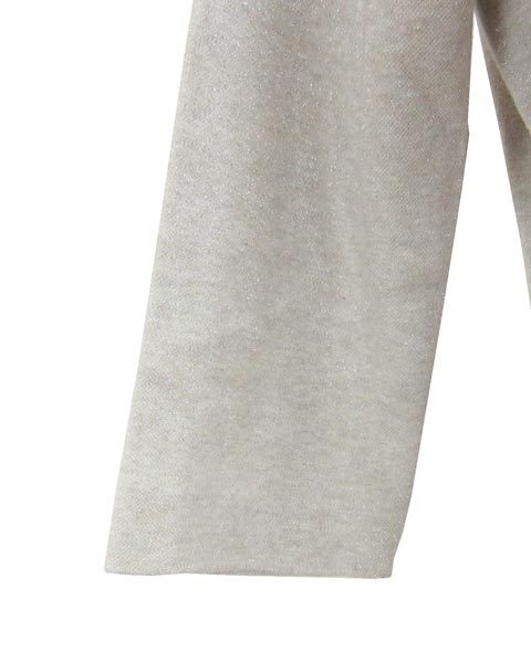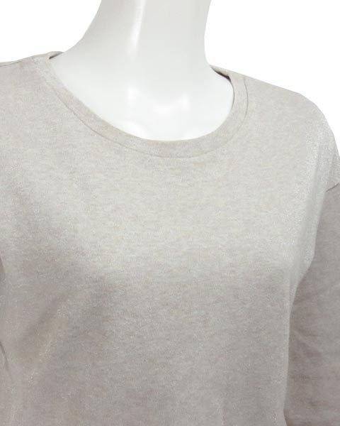 | カジュアルに着て頂けるラメ入りのトップス。落ち感のあるデザインです。細かいラメが入っていて、華やかな雰囲気があります。上品なベージュで、ボトムスのお色を選ばずあわせて頂けます。少し厚手生地で、春先や秋口、冷房時などで活躍してくれます。 |