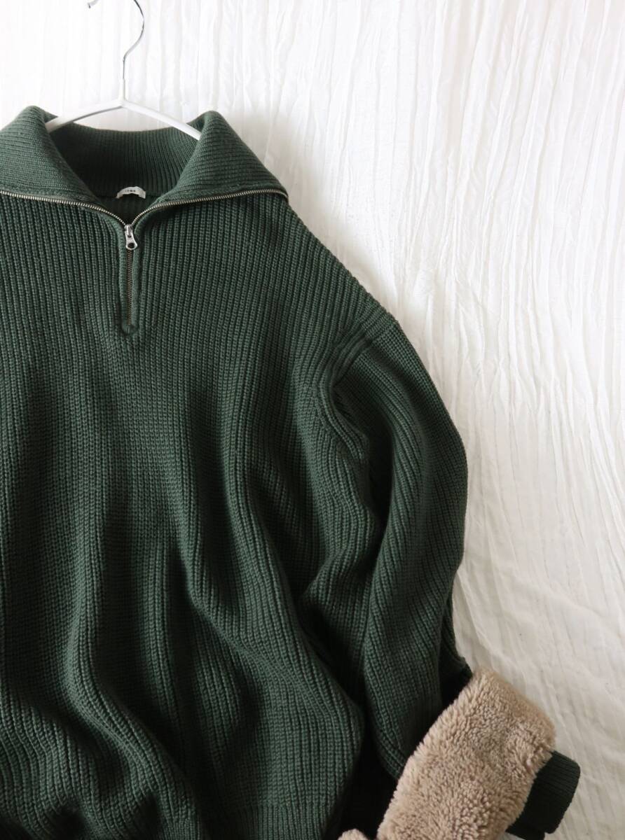引き続き人気の襟付きニット。16.5マイクロンの非常に上質な繊細なウール原料で作られた梳毛ニットです。着心地が良く肌触りがとても滑らか。贅沢に多本取りにしてミドルゲージの畦にしました。カジュアルな印象のZIP開きデザインですが、素材や作りの良さが上品で綺麗目に着て頂けます。一枚着にはもちろん、レイヤードするのもおすすめです。