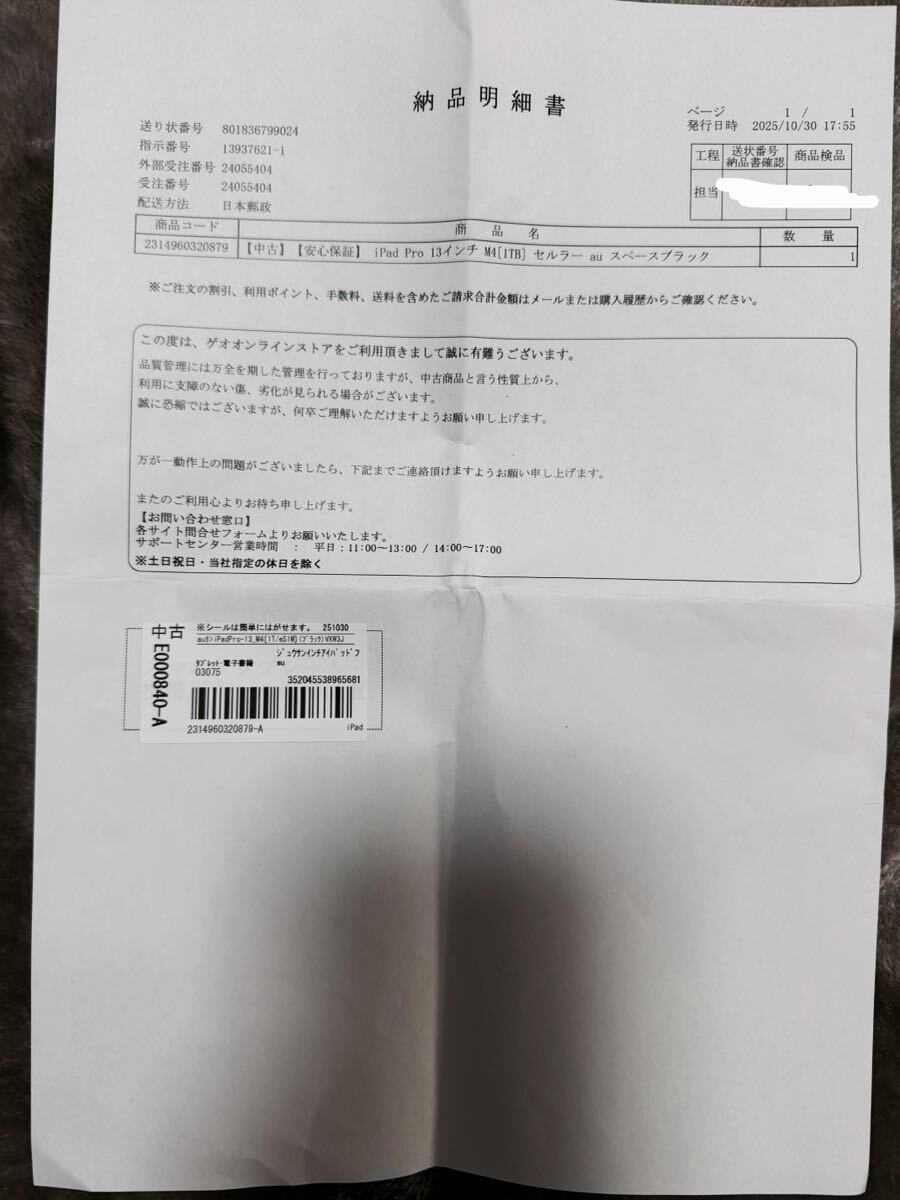 ・ゲオ赤ロム保証用 購入明細書(原本)