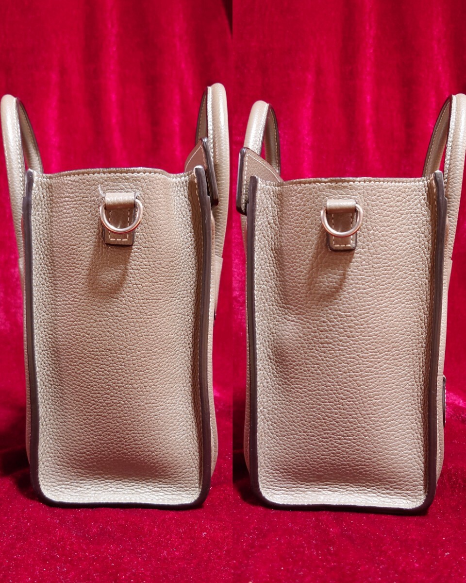素材はドラムドカーフスキン(牛革)を使用。グレーとベージュの中間カラーです。
