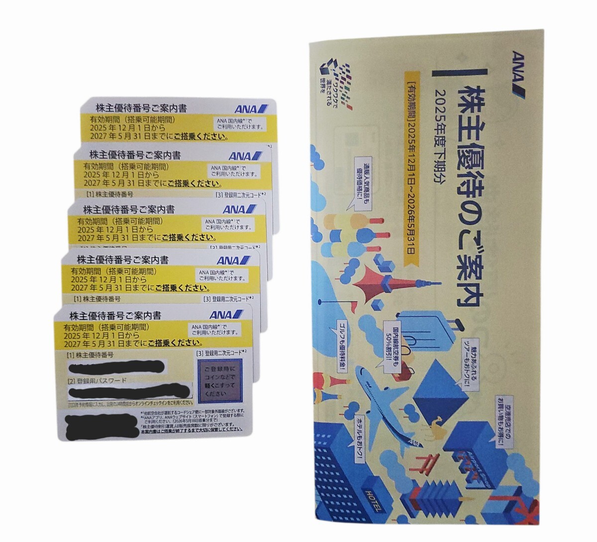 ★1円~【送料無料】ANA株主優待券 5枚セット(有効期間:2027年5月31日まで)+ANA優待券冊子