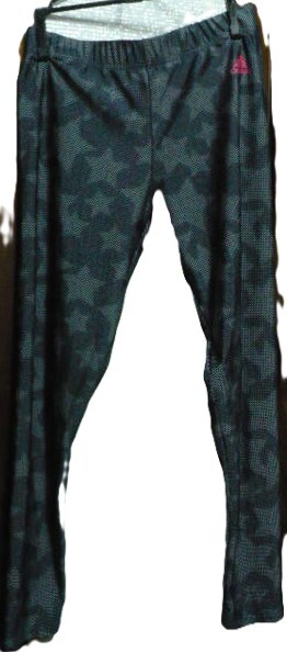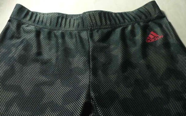 左腿のメーカーエンブレム部分のプリントと右後面上部のclimaliteロゴのプリントダメージ箇所有り。