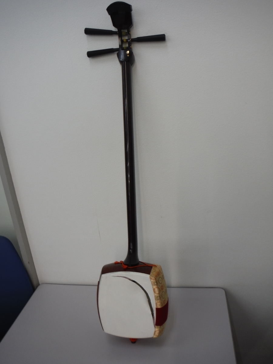 ○BEl 三味線 詳細不明 皮破れ有り ハードケース付 中古 鳥取県 引取歓迎