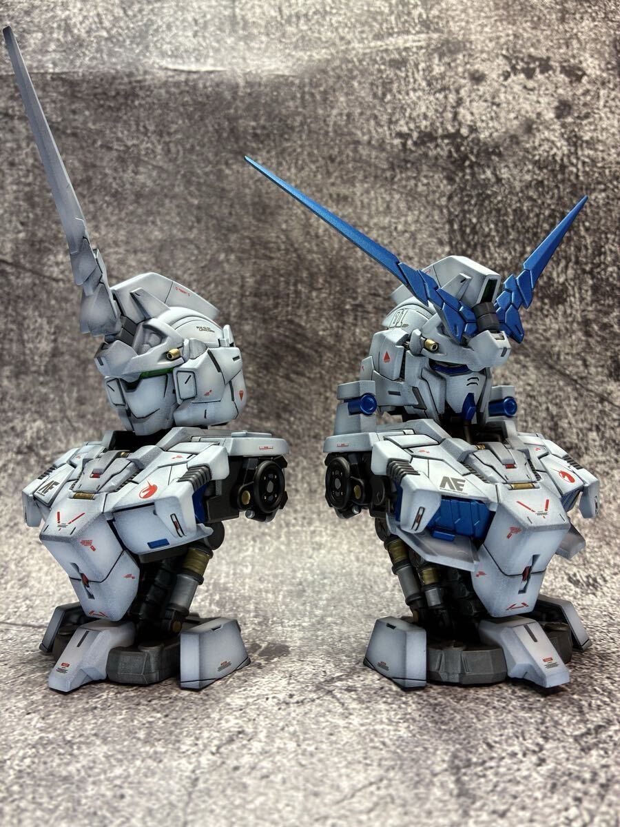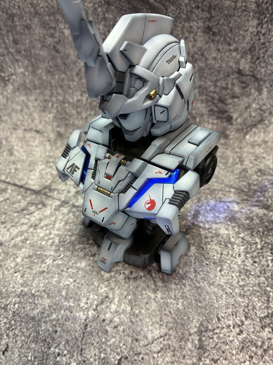 | 商品説明 | ご覧いただき、ありがとうございます。 各部品を組み立て、エアブラシ塗装、エナメルカラーにて部分塗装し、デカールを貼り、艶消しのトップコートを吹きかけています。 クリアパーツは、メタリックブルーの上に蛍光塗料を使用しているのでUVライトで発光します。 頭部センサ部にはグリーンに発光する蛍光塗料を使用しています。 商品本体と説明書が付属します。 同じカラーリング、デカール貼り付け位置のユニコーンモードの作品も同時出品しています。 是非そちらの作品もご覧ください。 |