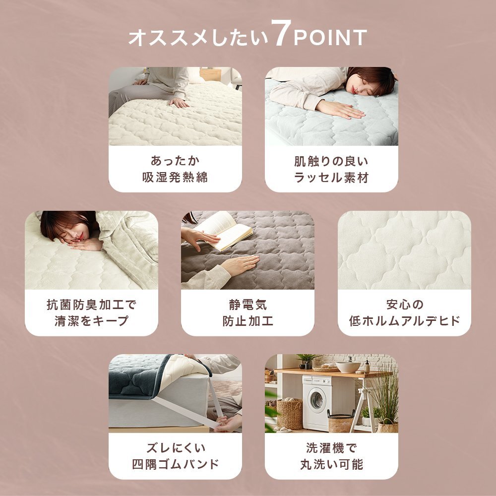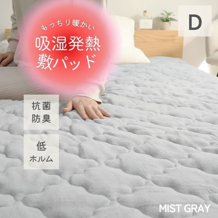 +2℃のあたたかさ! 身体から発散される水分を熱に変える吸湿発熱繊維"F-Tech"を使用。 抗菌防臭効果のあるフランネル生地を含む3層構造でしっかり保温! また、丸洗いOKなのでいつでも清潔です。 今年の冬はあったか敷パッドでぐっすり寝ましょう!! 当店販売の吸湿発熱あったか毛布と一緒に使うとさらに暖かいです☆ 【商品詳細】 カラー:ミストグレー サイズ: (約)140×205cm(ダブル) 素材:ポリエステル 【注意事項】 ・タンブル乾燥は使用しないでください。 ・ドライクリーニングはセキユ系でお願いします。 クリーニング後は日陰干しでドライ溶剤を完全に飛ばし、湿気の少ない風通しの良いところに保管してください。 ・長い時間濡れたままにしておくと、色落ちしたり他の製品に色移りしたりすることがありますのでご注意ください。 ・製品の特性上、ご使用中やお洗濯中に羽毛が出る事もありますが、機能的には問題ございません。 ・商品は、モニターによって色合いが異なって見える場合があります。 ※もちろん新品未使用品です 商品コード:FEF008MG |