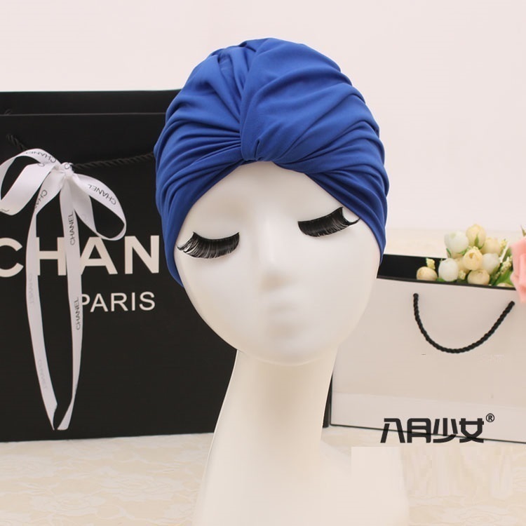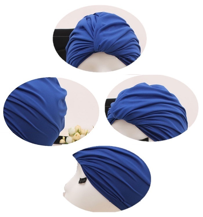 【 ジム や プール に♪】 お洒落な ターバン風 スイムキャップ フリーサイズ ブルー BL♪水泳帽 夏 海 水泳帽子 男女兼用