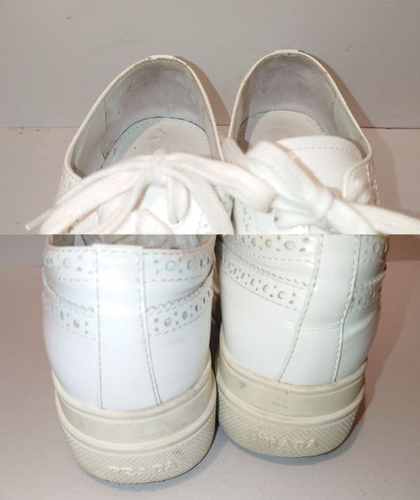 ★人気!美品★PRADA ホワイト レースアップブーツ 厚底 36.5 約23.5★