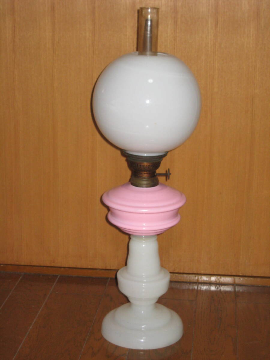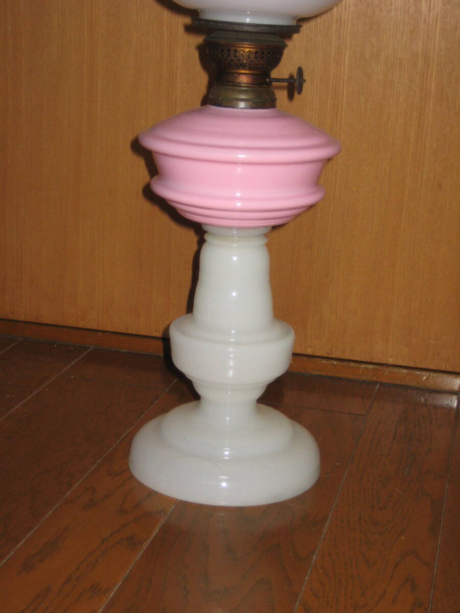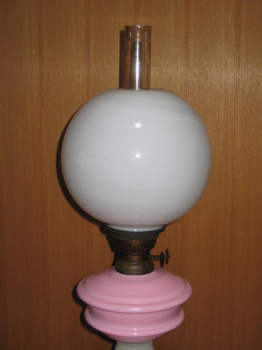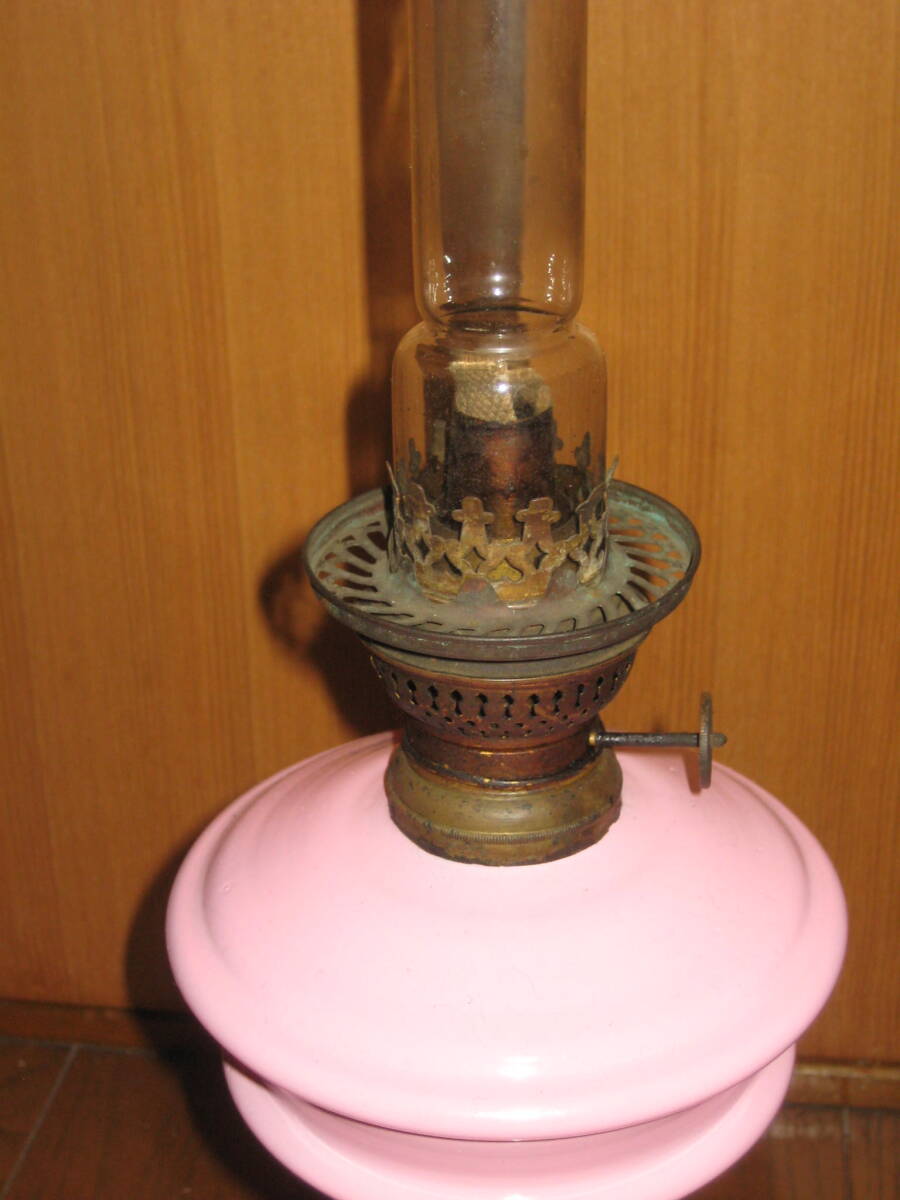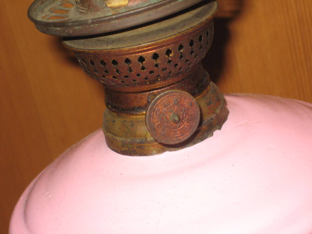 明治~大正期 卓上オイルランプ 塗装ピンクタンク
