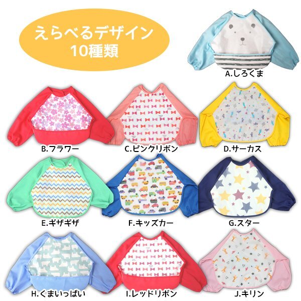 送料無料 ベビー お食事エプロン 選べる3枚 長袖エプロン 自由選択 スタイ よだれかけ ポケット 防水 かわいい 赤ちゃん 保育園 幼稚園