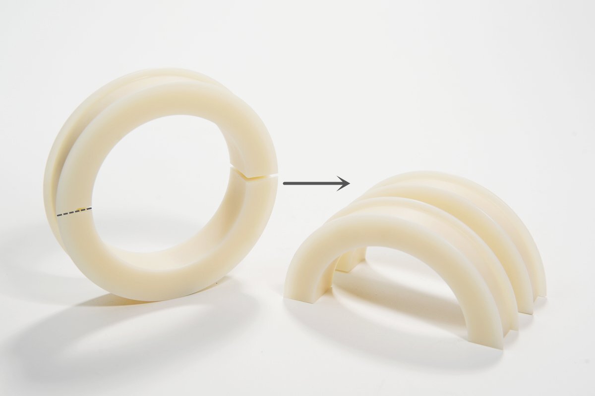 図面のように80㎜バンドの内径にピッタリはまるミゾが加工しております。