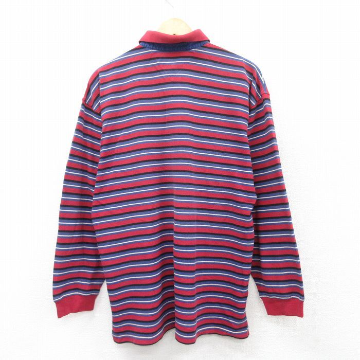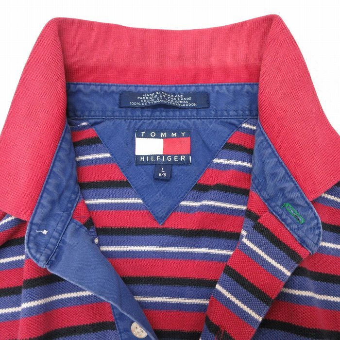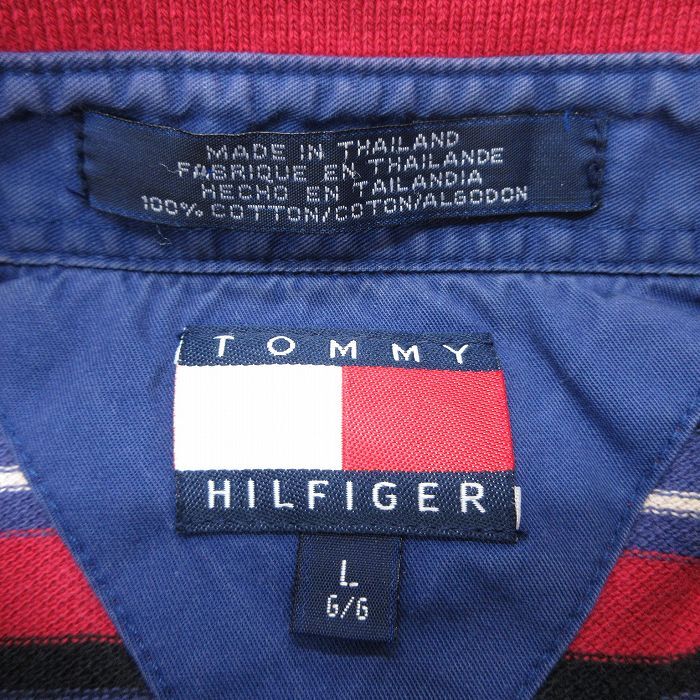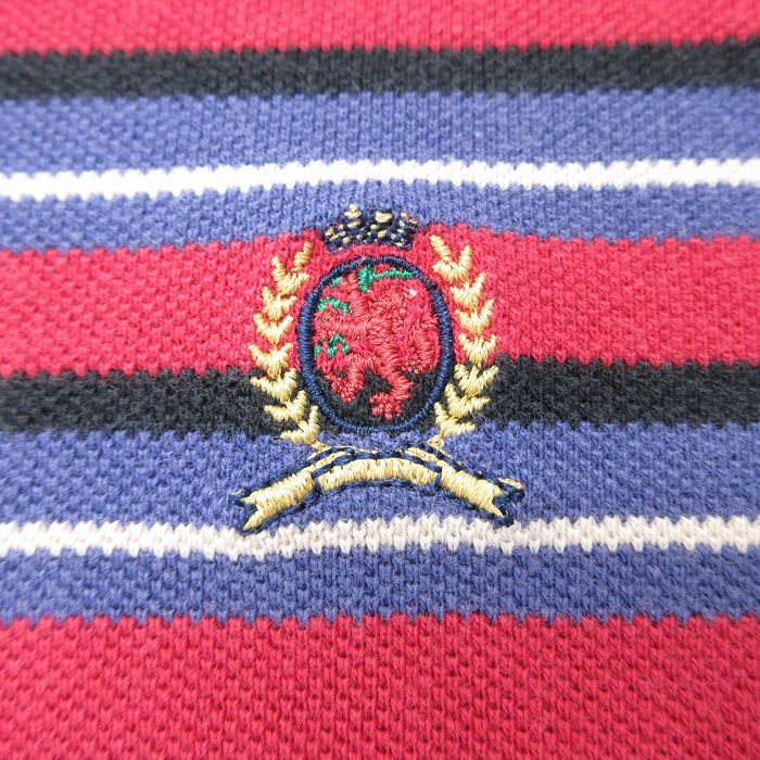 【商品名】 L★古着 トミーヒルフィガー 長袖 ブランド ポロ シャツ メンズ 90年代 90s ワンポイントロゴ 鹿の子 コットン 赤他 ボーダー