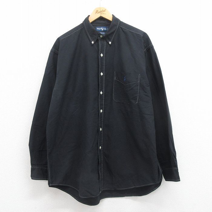 【商品名】 XL★古着 ラルフローレン 長袖 ブランド シャツ メンズ 90年代 90s ワンポイントロゴ BIG SHIRT 大きいサイズ コットン ボタンダウン 黒【spe】