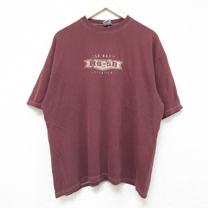 【商品名】 XL★古着 オールドネイビー 半袖 Tシャツ メンズ HS コットン クルーネック エンジ
