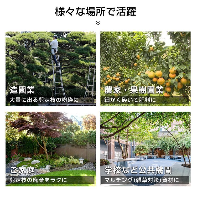 ■ハイパワー15馬力で剪定後の枝木をあっという間に粉砕します!