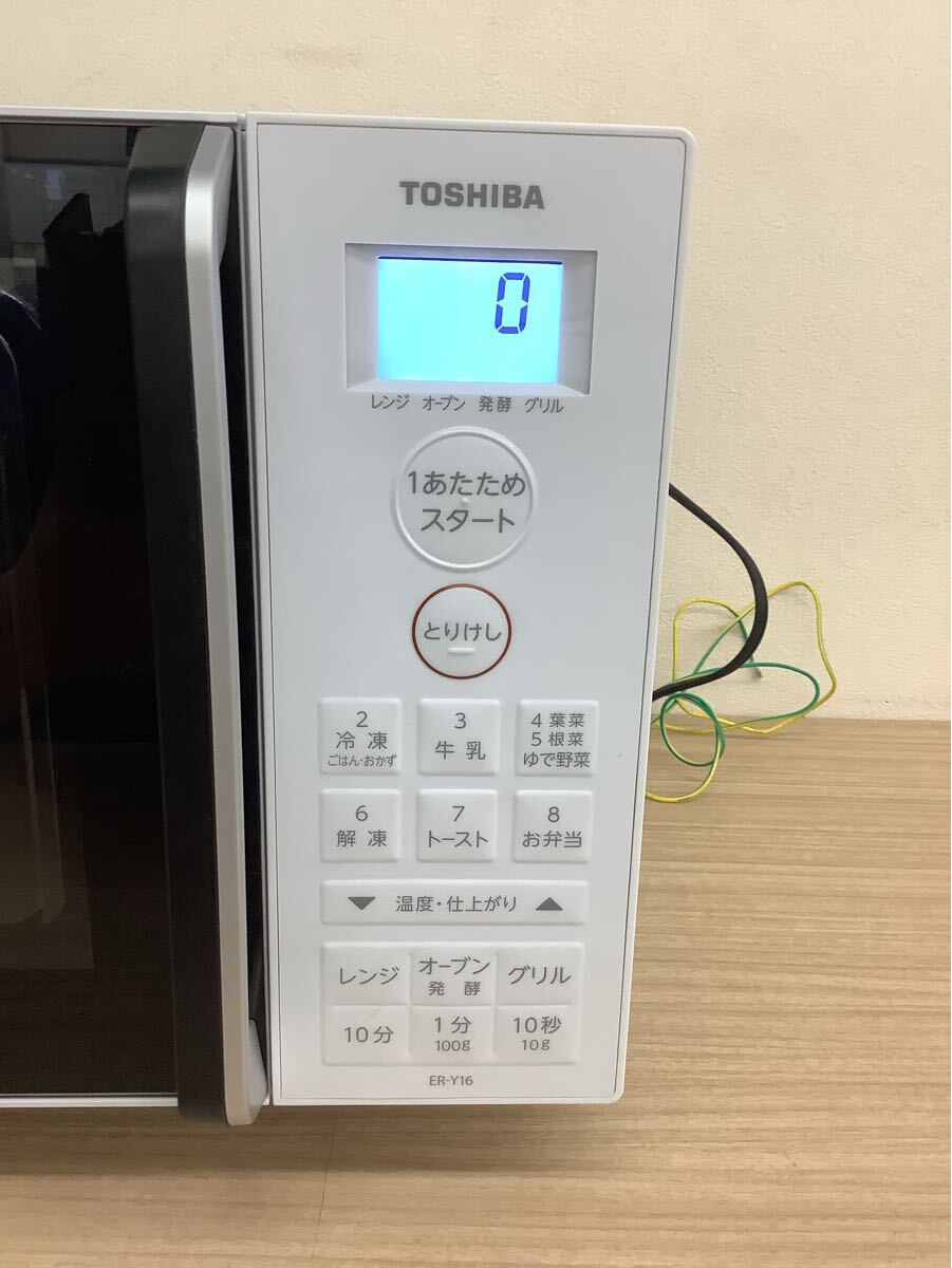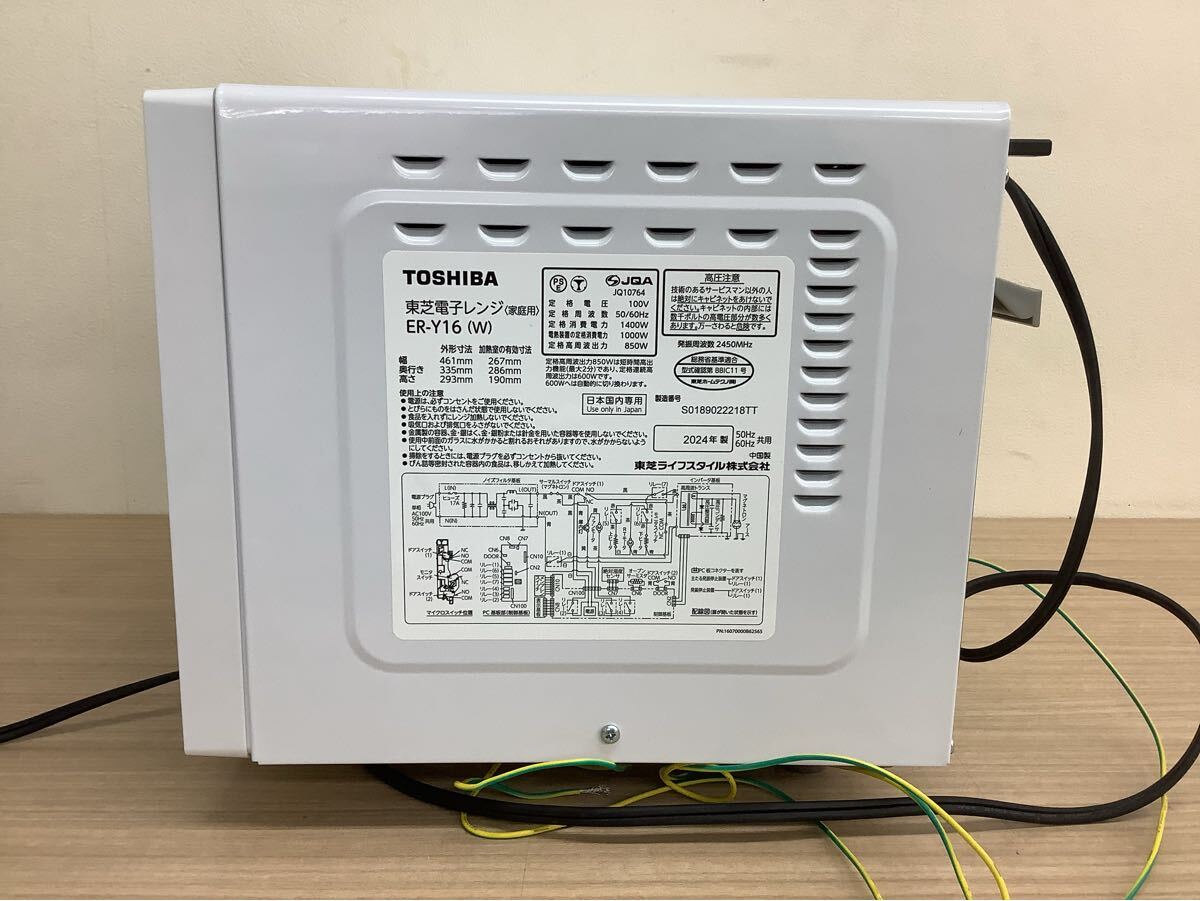 TOSHIBA 東芝 電子レンジ ER-Y16(W) 2024年製 フラットテーブル 動作品 オーブン・グリル搭載 左上部凹み有