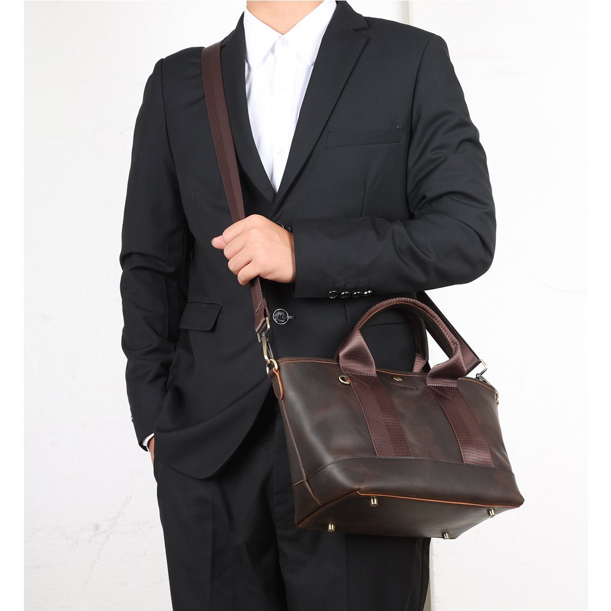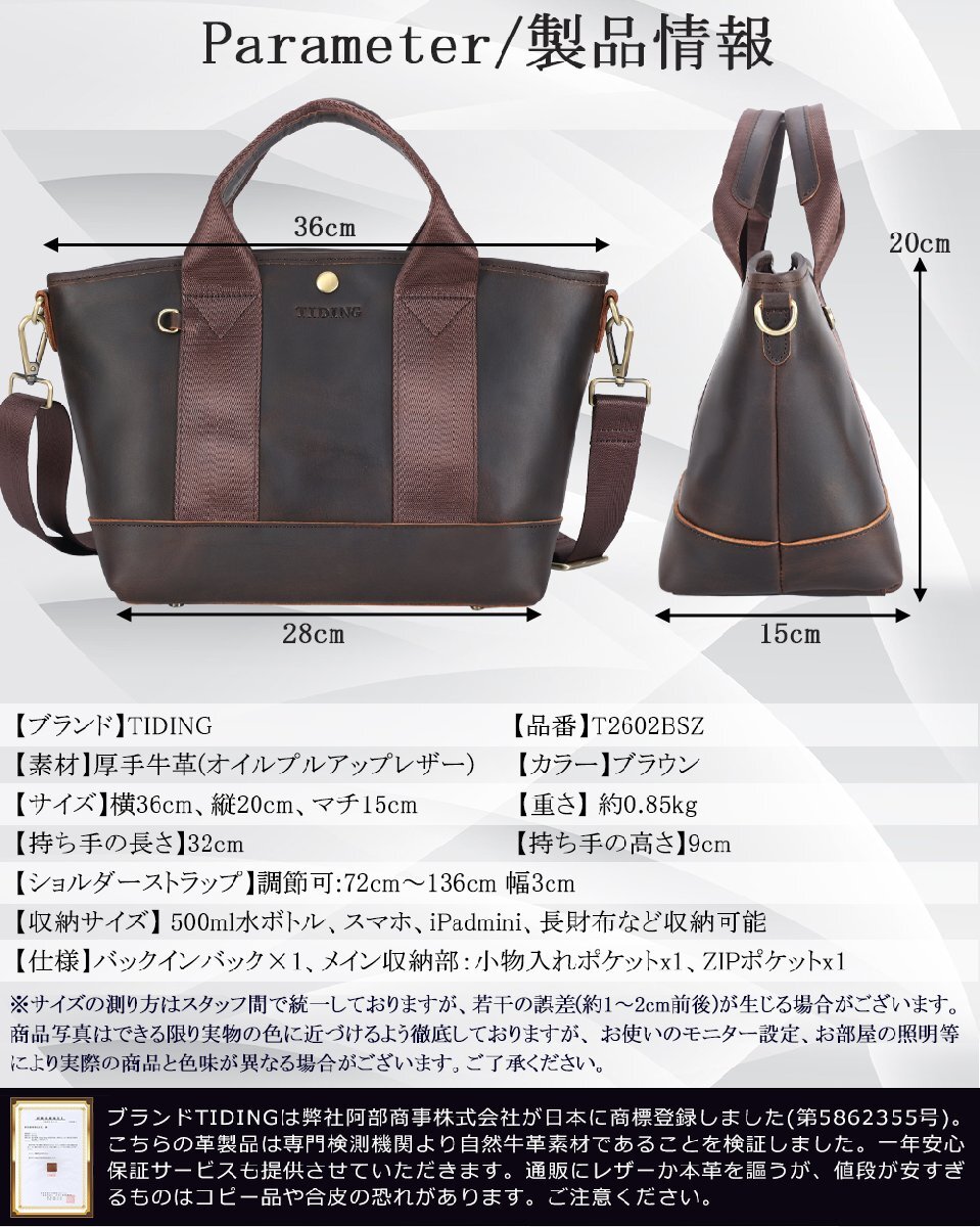 TIDING 厚手牛革 メンズ ショルダーバッグ 本革 自立 2wayバッグ レディース ハンドバッグ 手提げ 自転車 鞄 ブラウン 潮牛