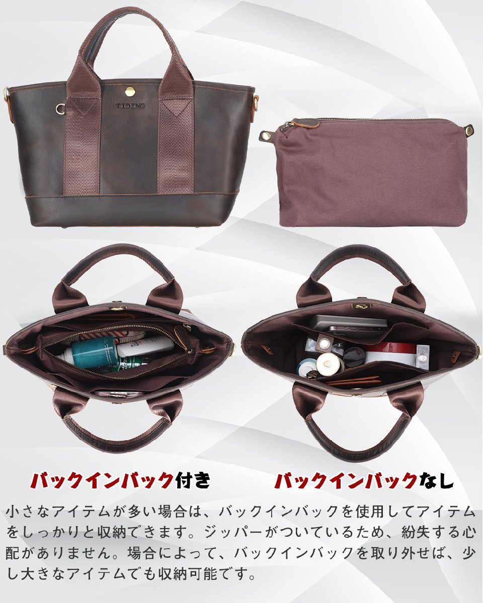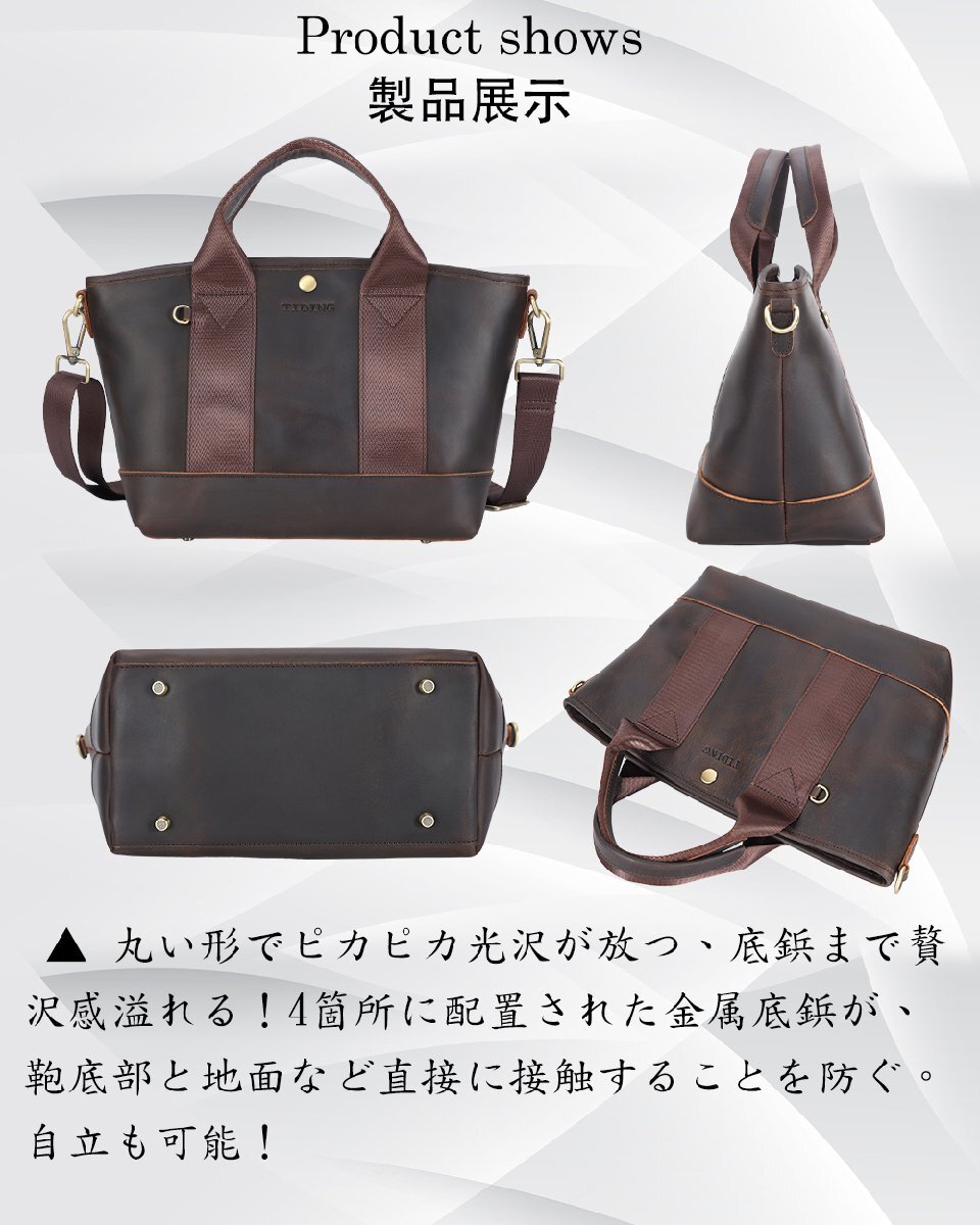 【自立機能】バッグが自立するため、取り出しやすく、立てたまま物を取り出しやすい。鞄マチが広くて収納力がたっぷり!底部まで頑丈な天然牛革素材を使い、入れ物が多くて安心です。