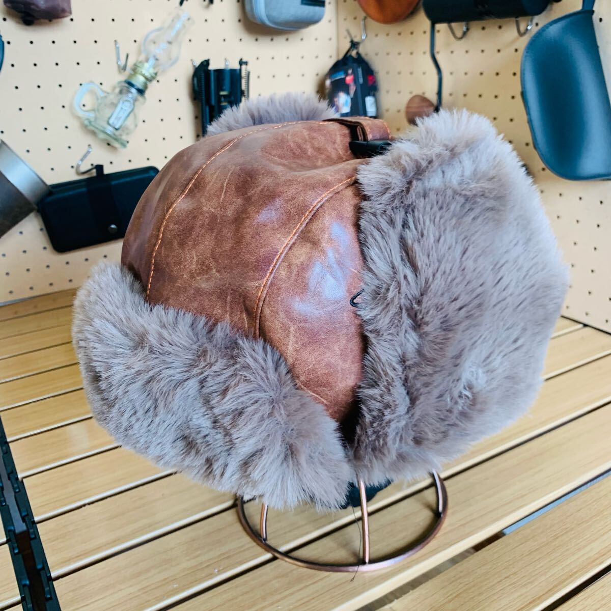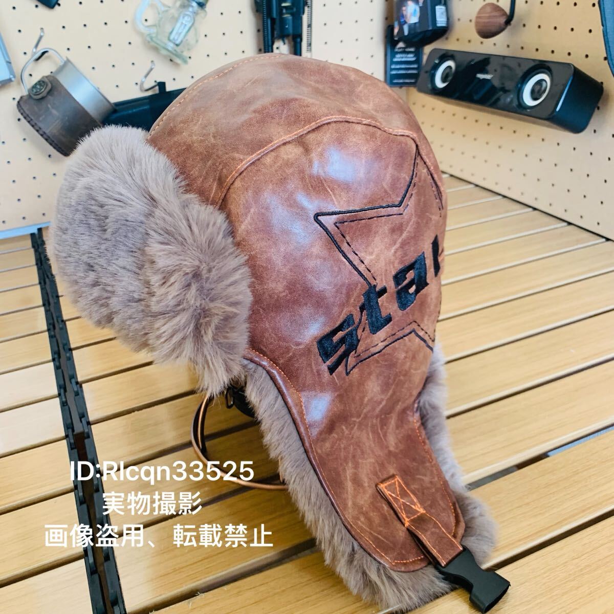 フェイクレザー パイロットキャップ 耳当て付き 裏ボア 防寒帽 冬用 トラッパーハット アウトドア バイク スキー 登山 男女兼用 56-58cm