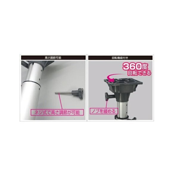◇◆詳細・スペック◆◇ ■AFボート スマートフィットマリンシート■ ●サイズ:幅約44cm×奥行約45cm×高さ約45cm・シート座面高さ11cm・折り畳み時厚18cm ●カラー:ホワイト/チャコール ●表面生地:UV対応PVレザー ●座面サイド部:ホワイトPVレザー ●底部材質:マリン対応高耐久ナイロン樹脂 ●底部ネジピッチ 約133mm×133mm ●付属品:取り付け用ビス M6ステンレス4本 ※ワンタッチ折りたたみ可能、ヒンジ部は高耐候ナイロン素材で高耐久性仕上げ ■BMOジャパン シートペデスタル 450-635mm■ ■品番:30C0068 ■天面板厚:170×170mm ■天面サイズ:10mm ■材質:アルミ/樹脂 ■支柱径:Φ75mm/Φ60mm ■底面サイズ:Φ230mm ■高さ調節幅:450‐635mm ■重量:約2.9kg ◇◆特 徴◆◇ ●ホワイトカラーのマリンシートがデビュー ●シートは折り畳みができる構造で、ヒンジ部、底部は強化樹脂製で高耐久 ●45cm高の背もたれ部は、ワイド設計も相まってしっかりと体を預けられ抜群の安心感 ●骨格となるフレームはお尻に追従しやくR形状に仕上げているので、両サイドのホールド感は見た目以上。分厚いクッションで疲れが少なく快適に使用できます ●夏場の炎天下を考えたホワイト系のカラーリングとなり、汚れを目立たせないチャコールも配色 ※※アルミスイベルは各自取り付けとなりますので、あらかじめご了承願います | ||||