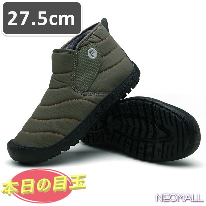 ユニセックス スノーシューズ 【869】 27.5cm オリーブ ムートンブーツ スニーカー ウィンターブーツ 裏起毛 防水 防寒 防滑 冬用靴 綿靴