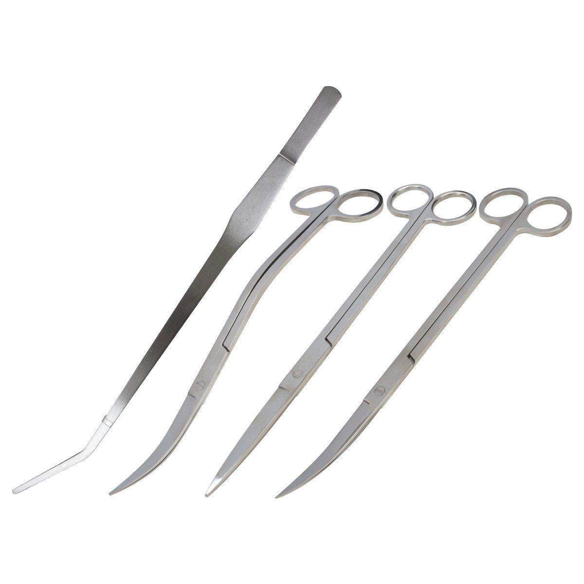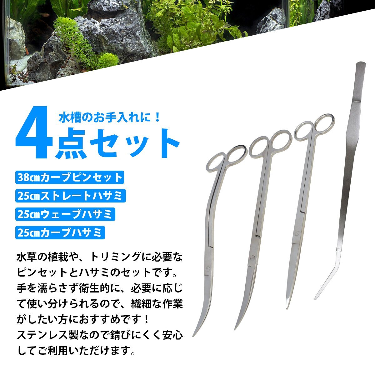4点セット 『250mm 25cm ハサミ 3種類 & 380㎜ 38cm ピンセット 先端カーブ 』 水槽 水草トリミングキット