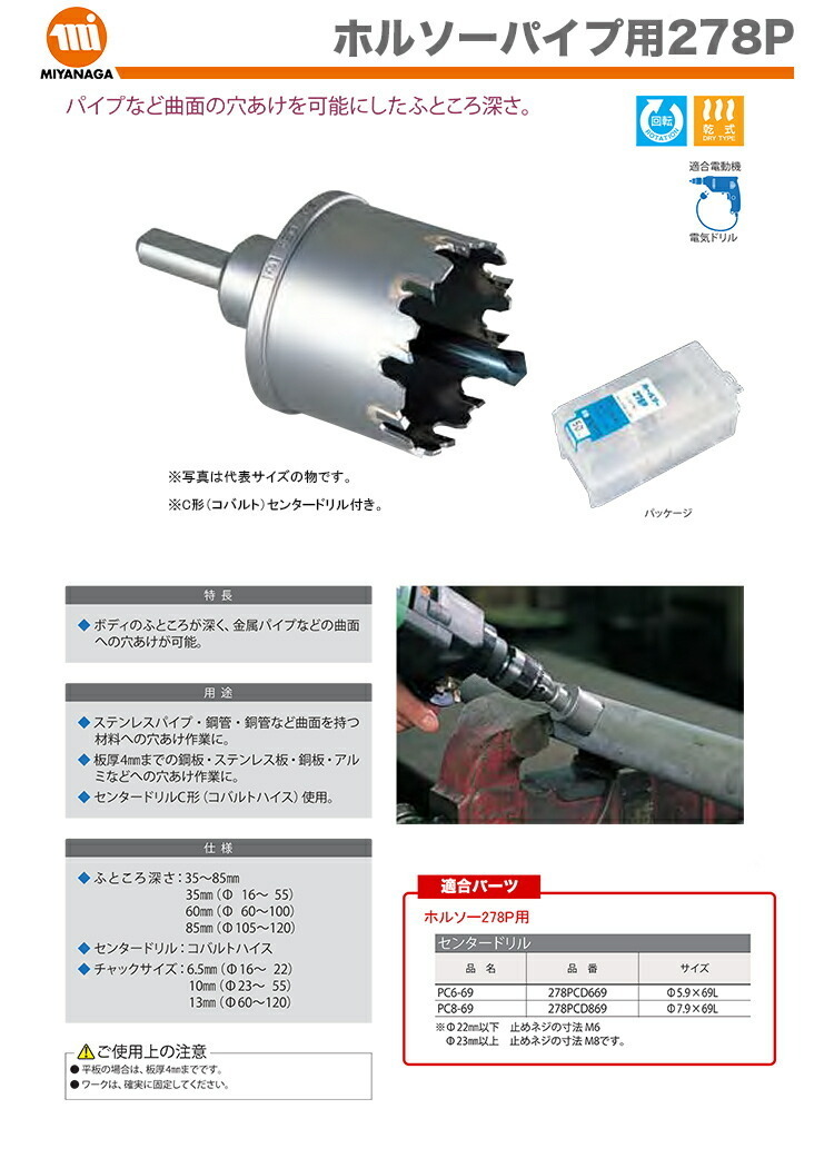 クーポンあり★数量限定 ミヤナガ ホルソーパイプ用 278P 278P042 JAN:4957462013665