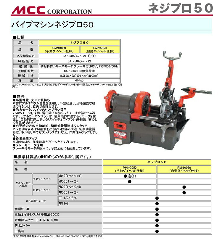 【オススメ】【新着商品】〈MCC〉パイプマシン ネジプロ50  PMNG050
