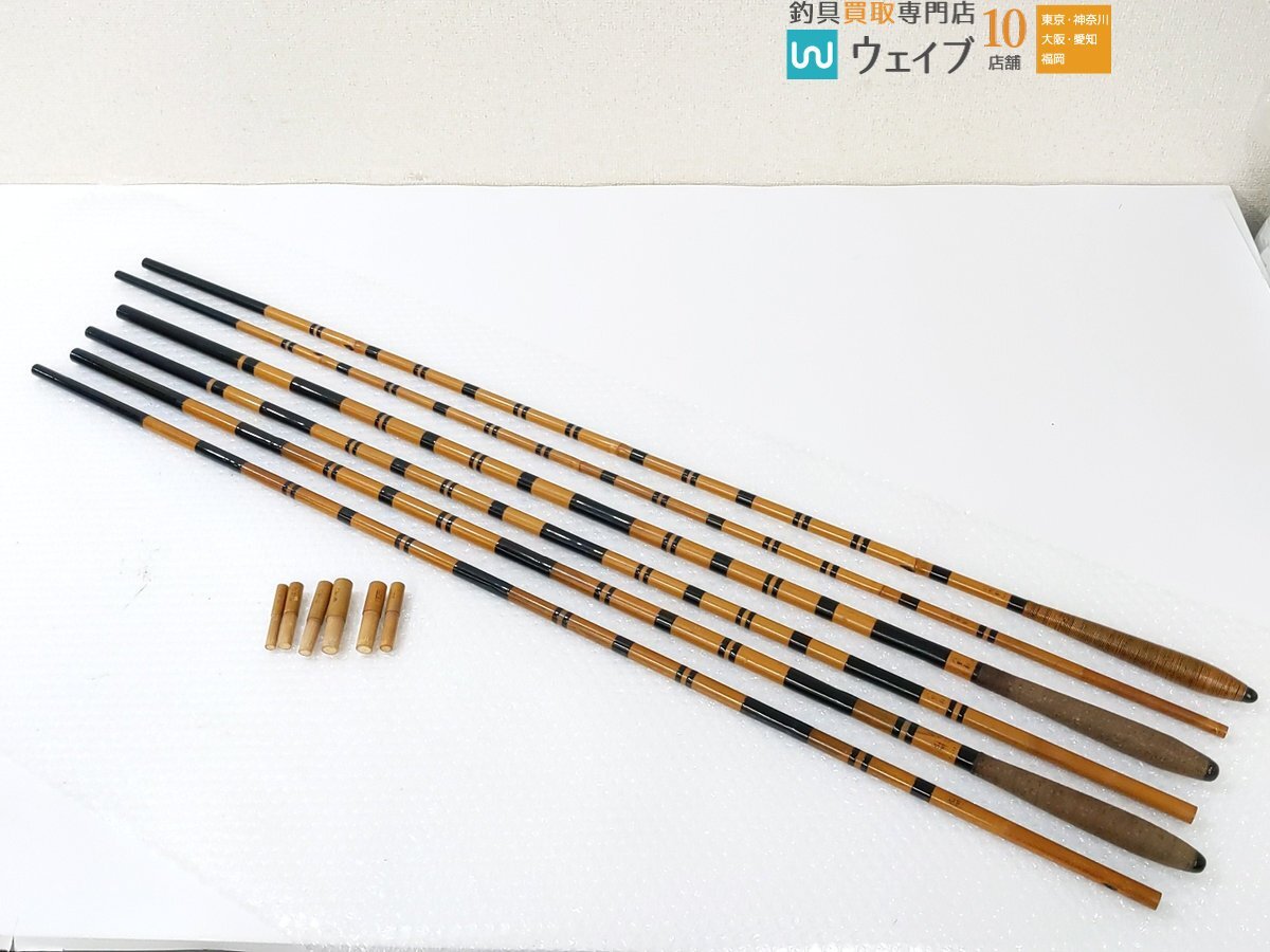 | 説明 | ・弘宇 あさひ 18.25 仕舞:115.5cm 自重:284g ・八重菊 54 仕舞:116cm 自重:296g ・水想観 古都 硬式 16.4 仕舞:120cm 自重:202g 以上のセットになります。 数値はいずれも実測です。 誤差などはご容赦ください。 穂先に反りがややあるものもございます。 使用に伴うスレやキズがございます。 口に塗装欠けはございますが、割れは現状見られません。 ※付属品を含め写真に写っているものが全てとなります。状態に関してはランク表または写真を参考にしてください。 |