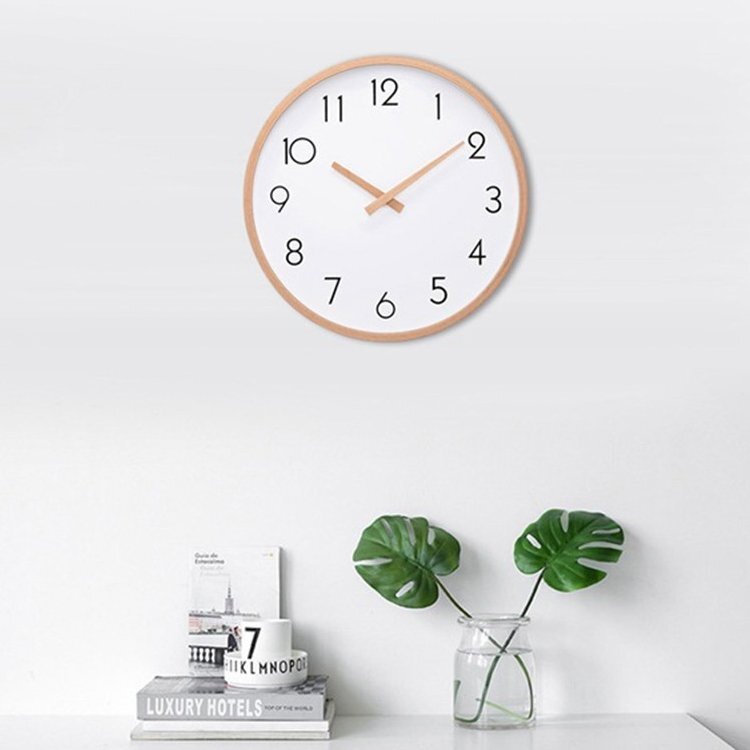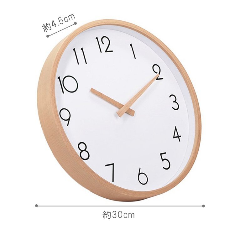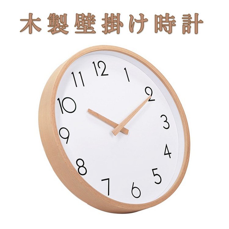 ◆木製掛け時計 ナチュラル 天然木 壁掛け時計 静音ムーブメント クオーツ式 木目 丸型 ウッド ウォールクロック リビング 寝室 オフィス シンプル インテリア ギフト 贈り物 WWCLC30